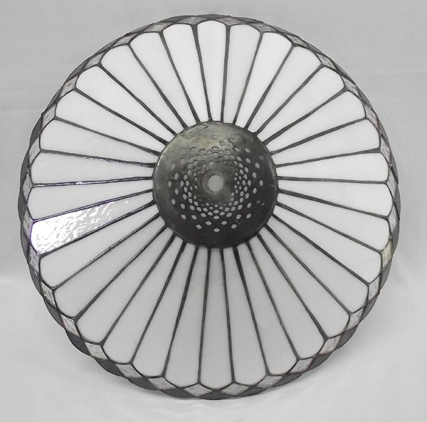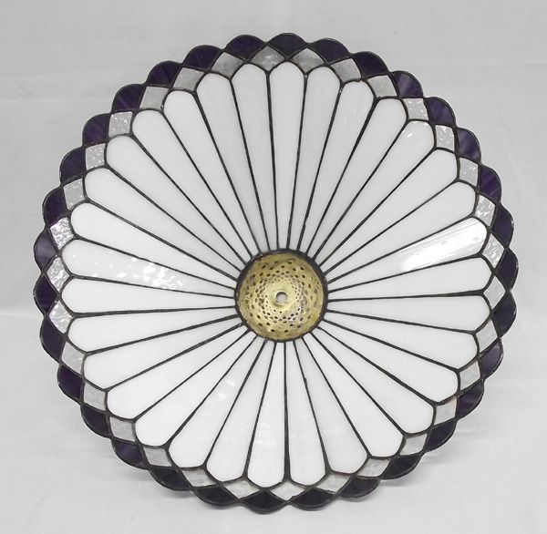 Stained Glass Lamp Shade. Lovely white glass tear drop shapes with clear and purple glass edge trim. Measures 16.5''Wx6''H.