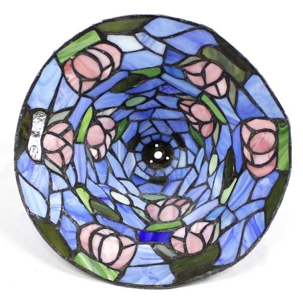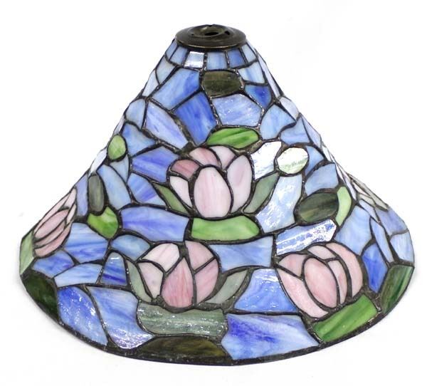 Stained Glass Lamp Shade, measures 8'' x 12'', one of the blue pieces has a 1'' crack in it