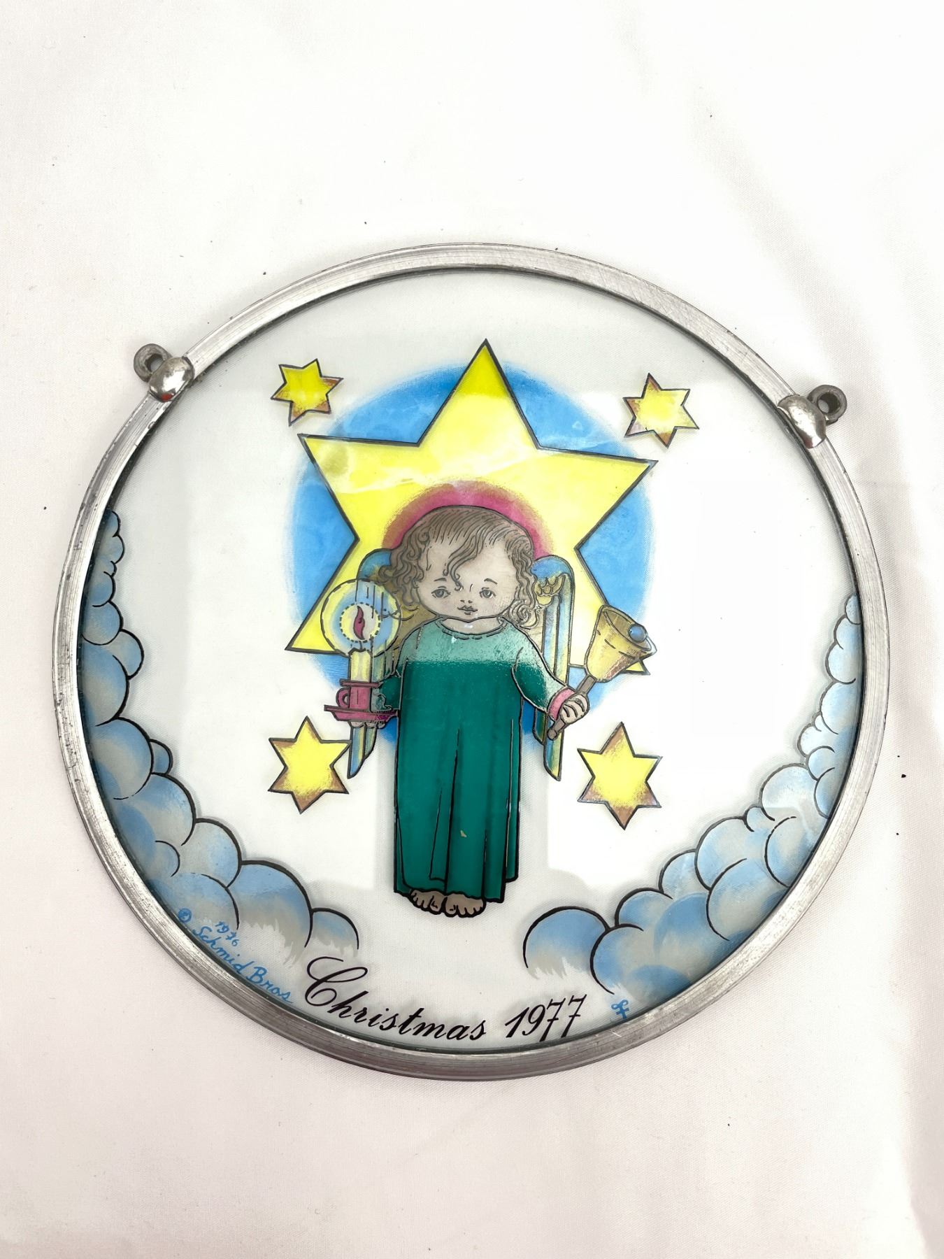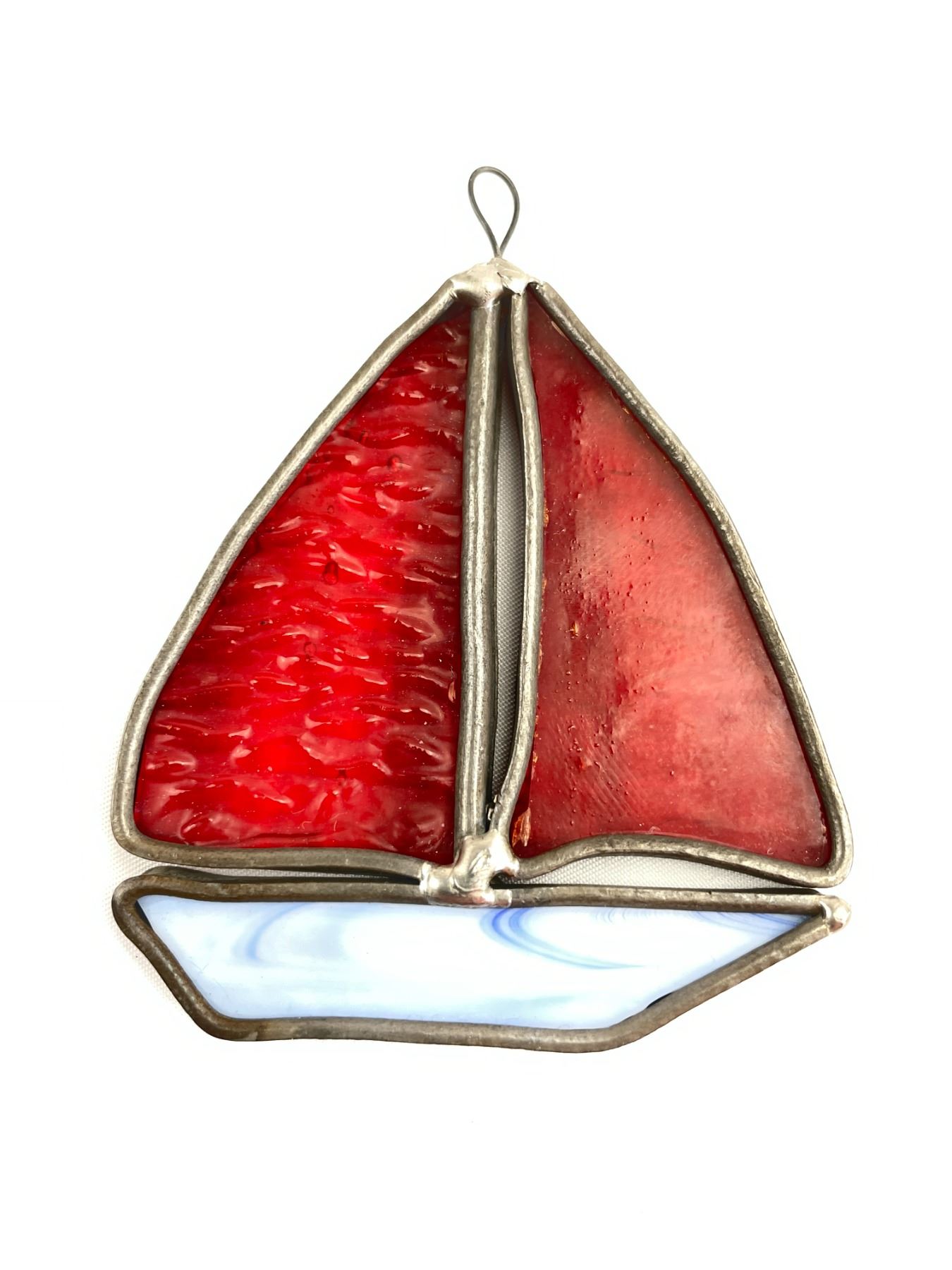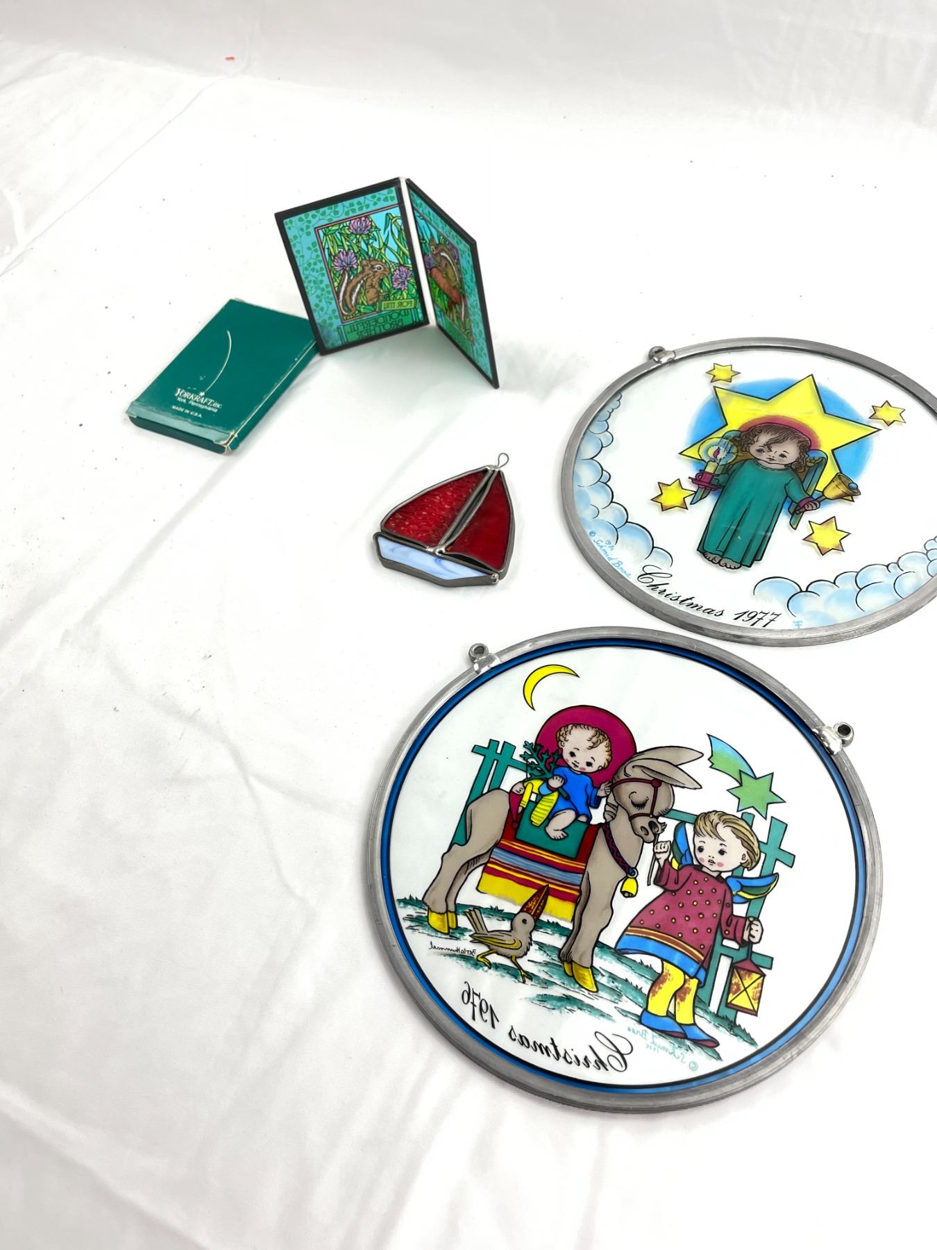 Herald Angel stained glass - Schmidt Brothers 1976 7 1/4" wide x 7 1/4" length. Stained glass sail boat weight 2 oz dimensions 3" height x 2.5" wide - Reflection Seriglass