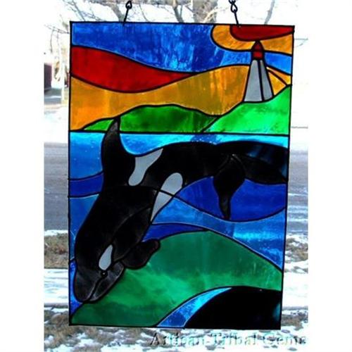<tr><td>Title:Stained Glass Painting Orca Whale </td></tr>
