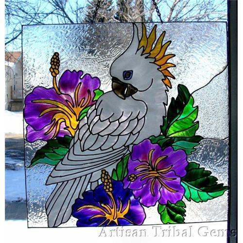 <tr><td>Title:Stained Glass PaintingCOCKATOO Hibiscus Bush </td></tr>