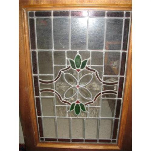 Nice stained glass panel. This is actually the top part of a door that was cut off. Lovely floral pattern. Good and sturdy but a couple of small cracks in the glass. It is still a beautiful piece! It measures 30"W x 42"H overall, the glass panel measures 21.5"W x 34'5"H. Very Affordable! We buy entire estates and pass the savings on to you, please visit our 2 Atlanta stores, Aardvark-Antiques, and our online store!
