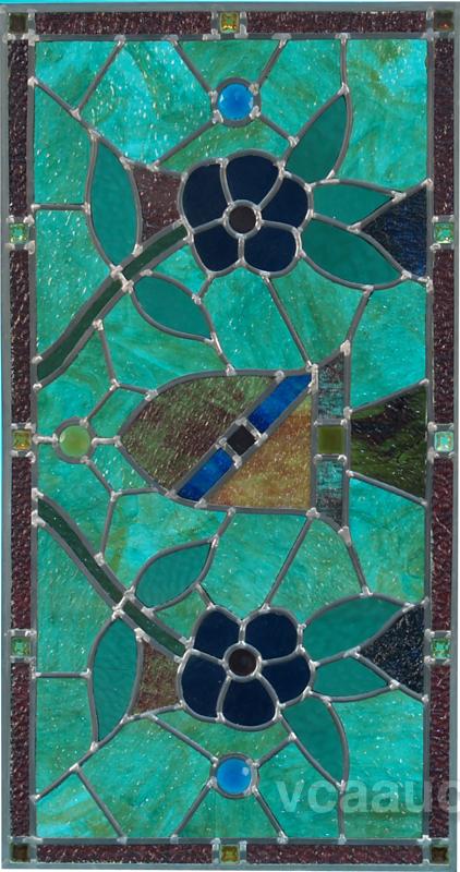 Stained Glass Panel w/ Flowers - 18" x 34"