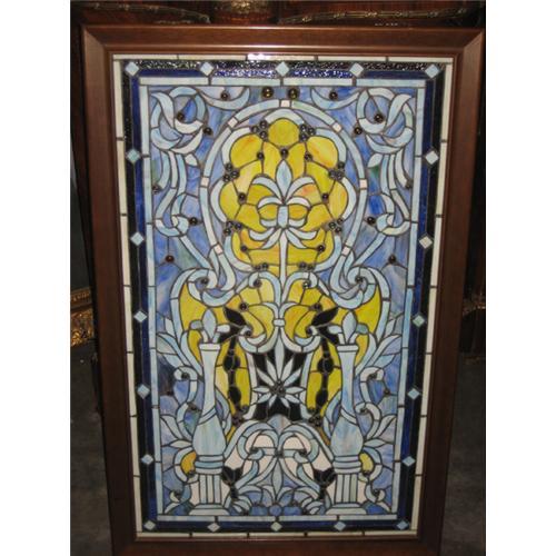 THE VIBRANT COLORS MAKE THIS STAINED GLASS PANEL SHINE IN THE SUNLIGHT. IT WILL MAKE A BEAUTIFUL ACCENT TO ANY HOME.