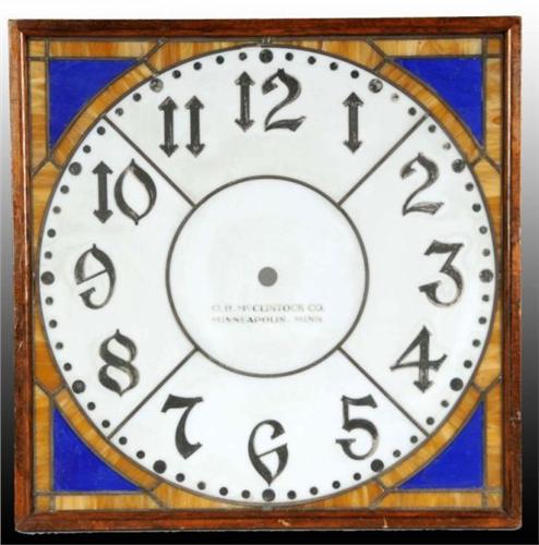 Description Circa 1910. By the O.B. McClintock Company in Minneapolis, Minnesota. Framed in wood. The border has three pieces of cracked glass. Center white portion is intact. No clock, just the face. Advertising Clock Condition (Excellent). Size 26 - 1/2" x 26 - 1/2".