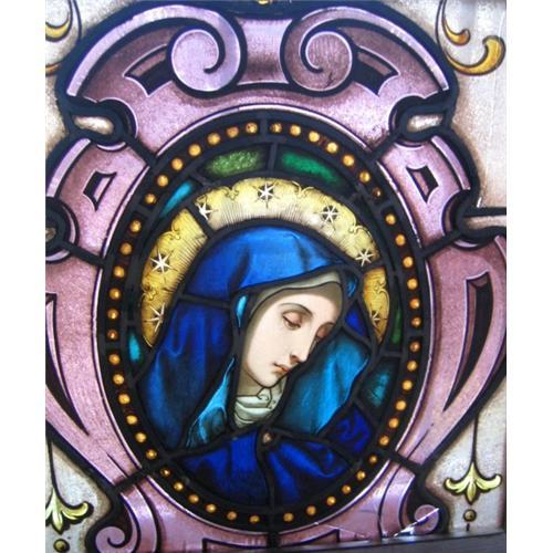 <tr><td>Title:Stained Window with the Face of Mary with tears</td></tr>