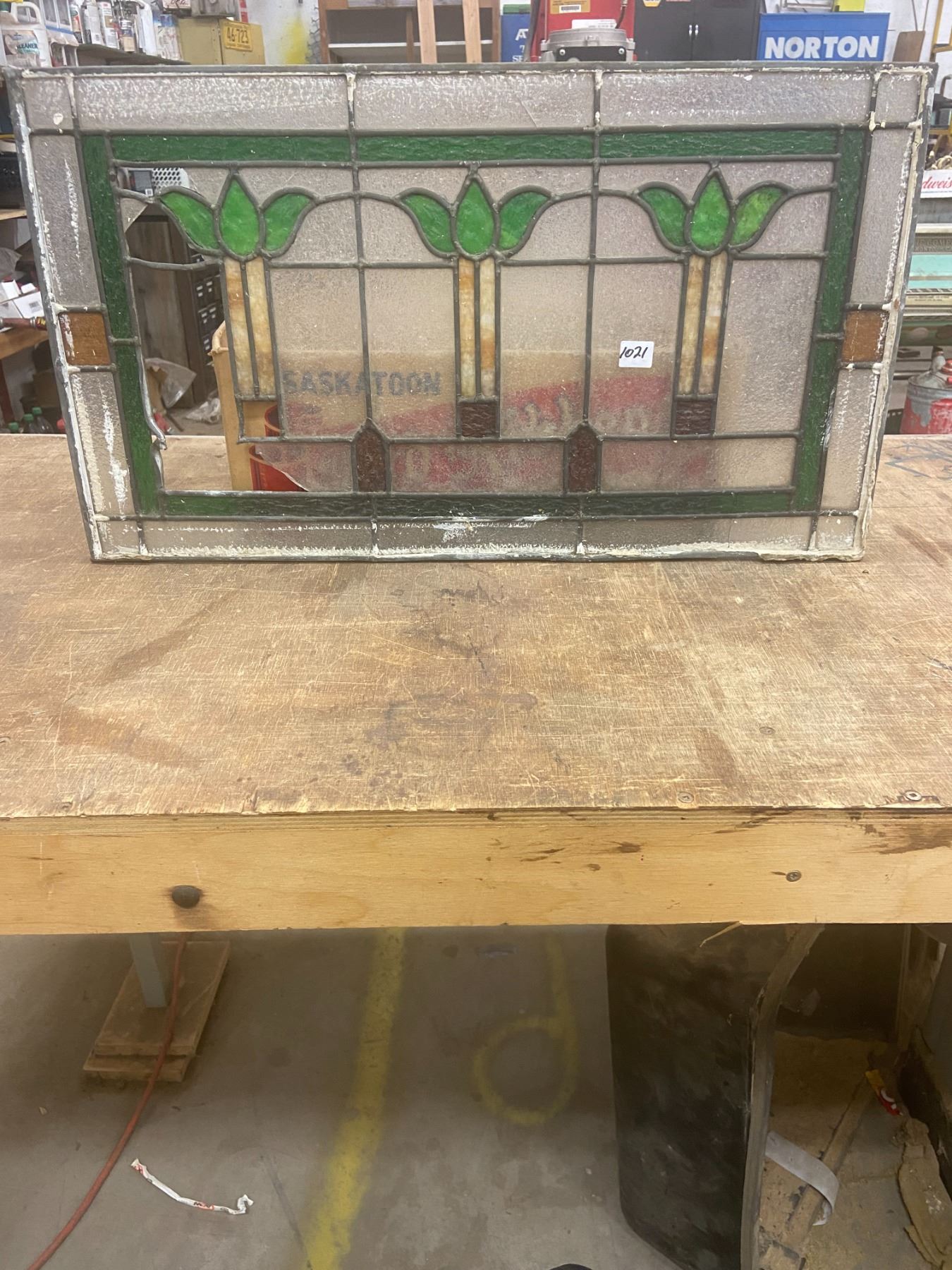 Stained glass window - Has damage - 25"x14" - Very old, can be repaired