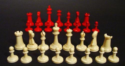 Stained ivory chess set in mahogany box