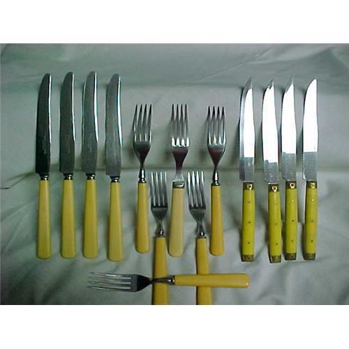 <tr><td>Title:Stainless Flatware with Celluloid - Set of 14</td></tr>