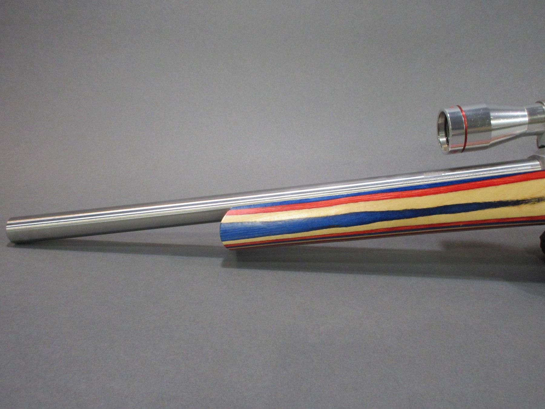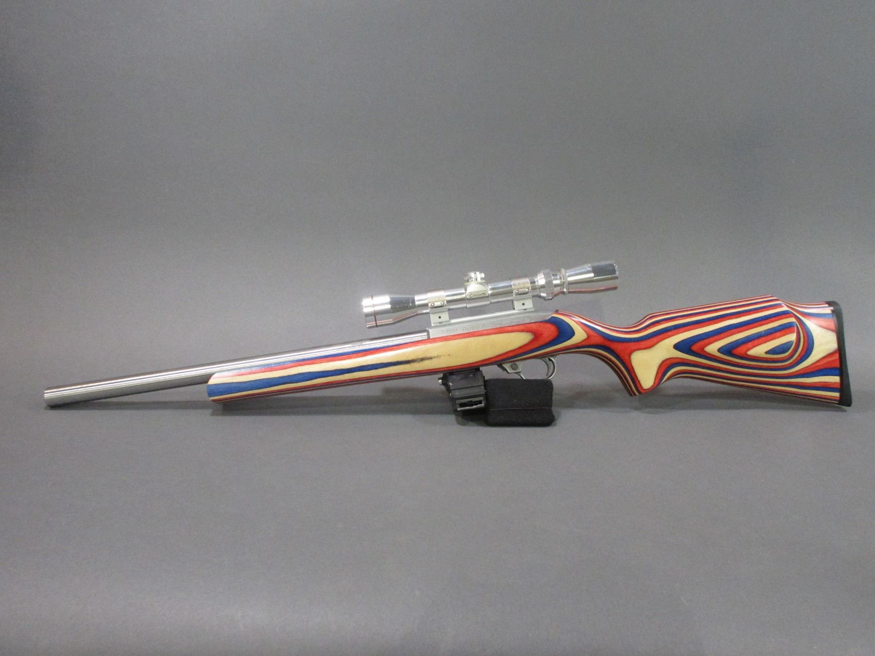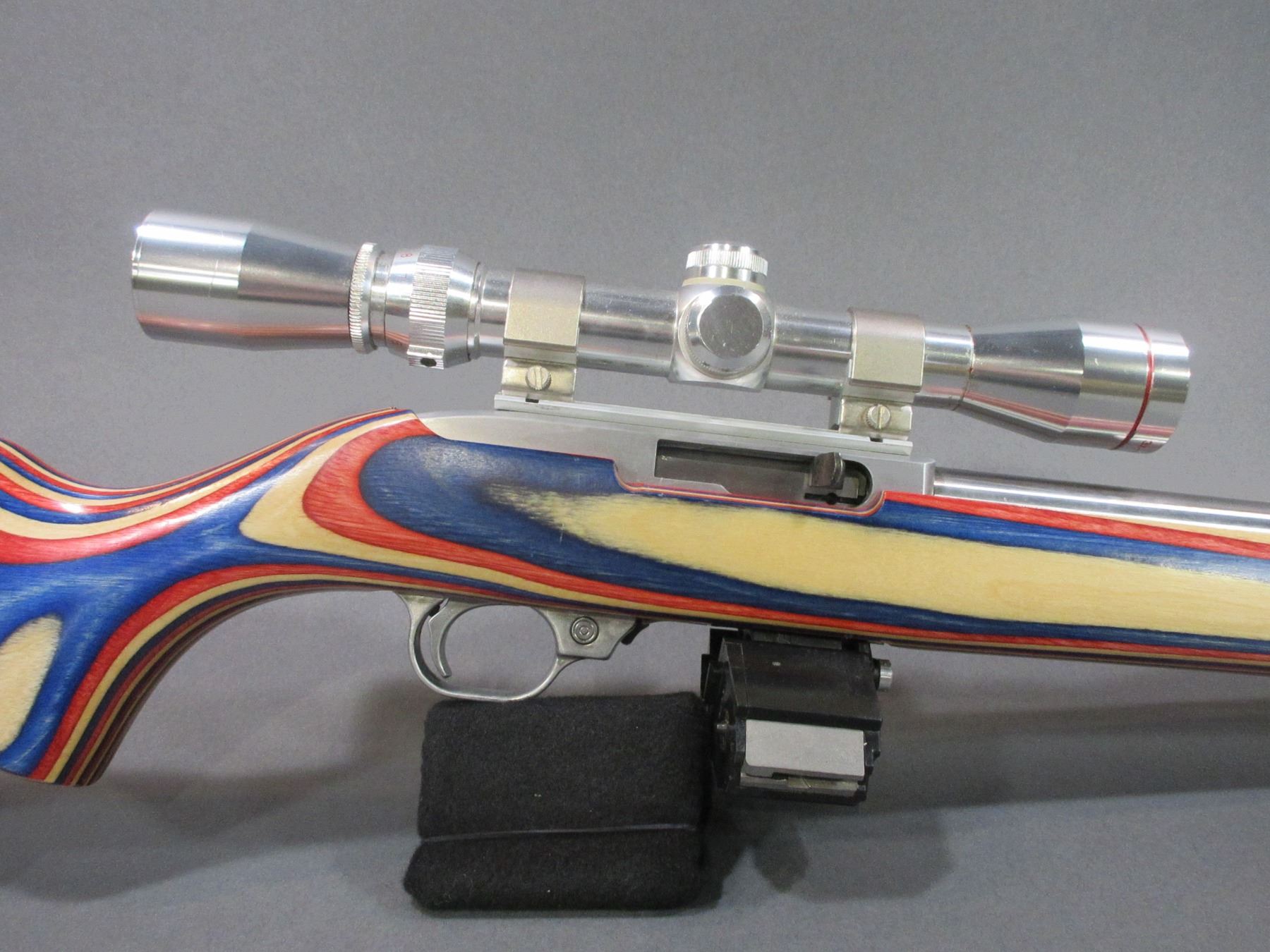 Stainless Ruger Model 10/22 Carbine- .22LR- 18" Midway Bull Barrel- Laminated Stock And Forearm- Triple Mag- Simmons 3X9 Scope- Excellent Condition- #125-18784