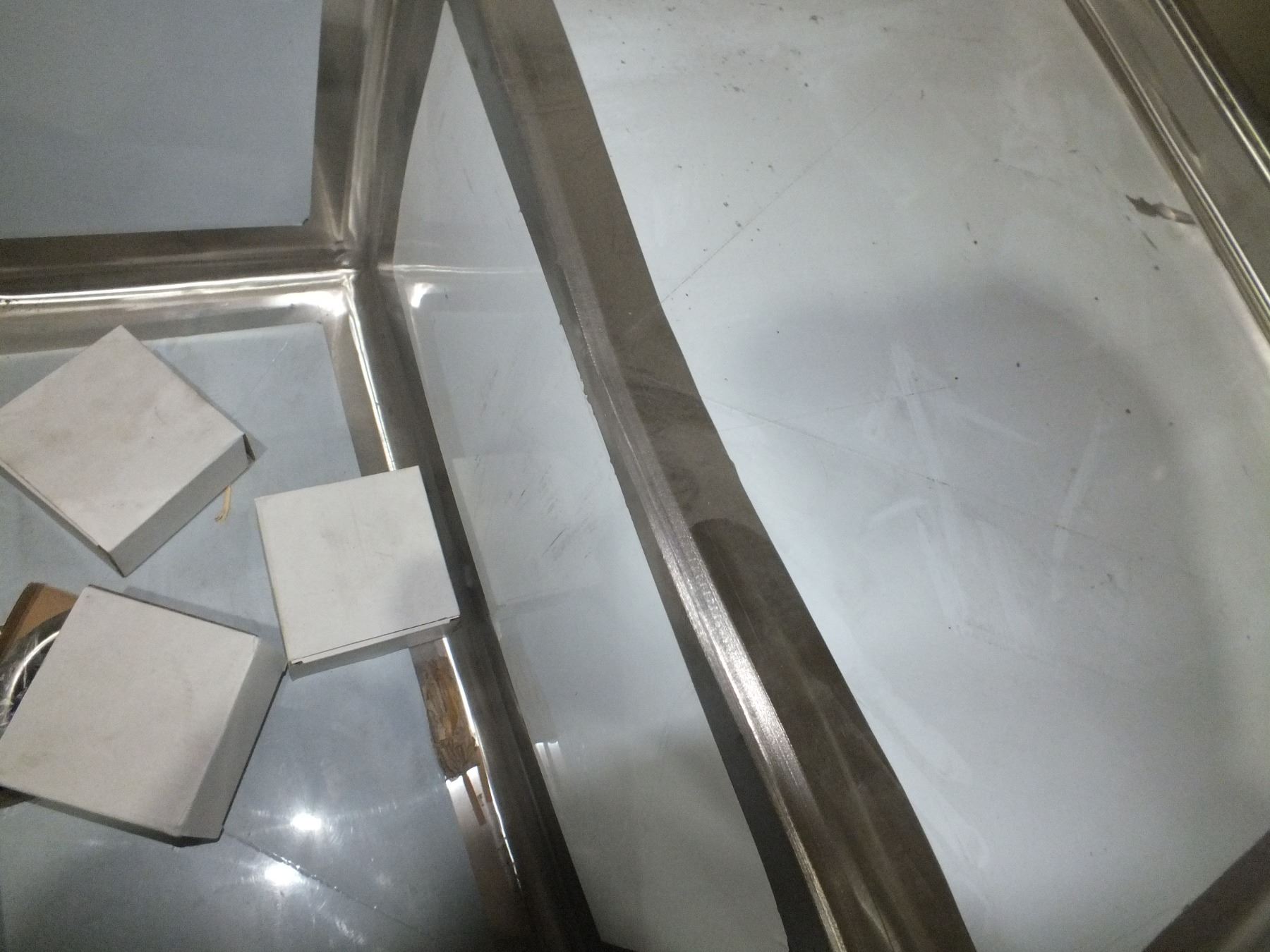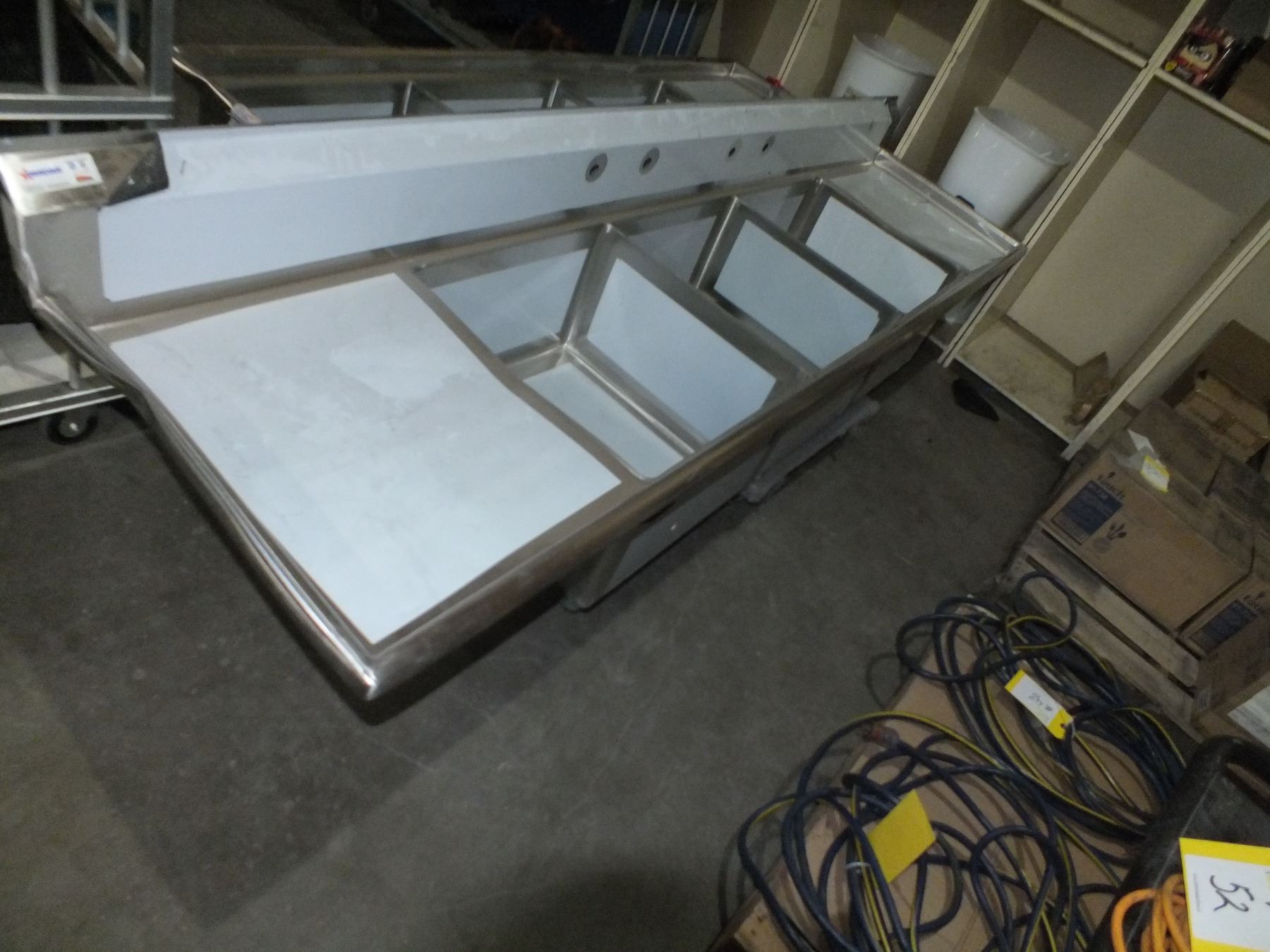 Stainless Steel 3 Bay Sink, has some damage as seen in the photos, has legs, 10ftl 31"w, freight claim...new