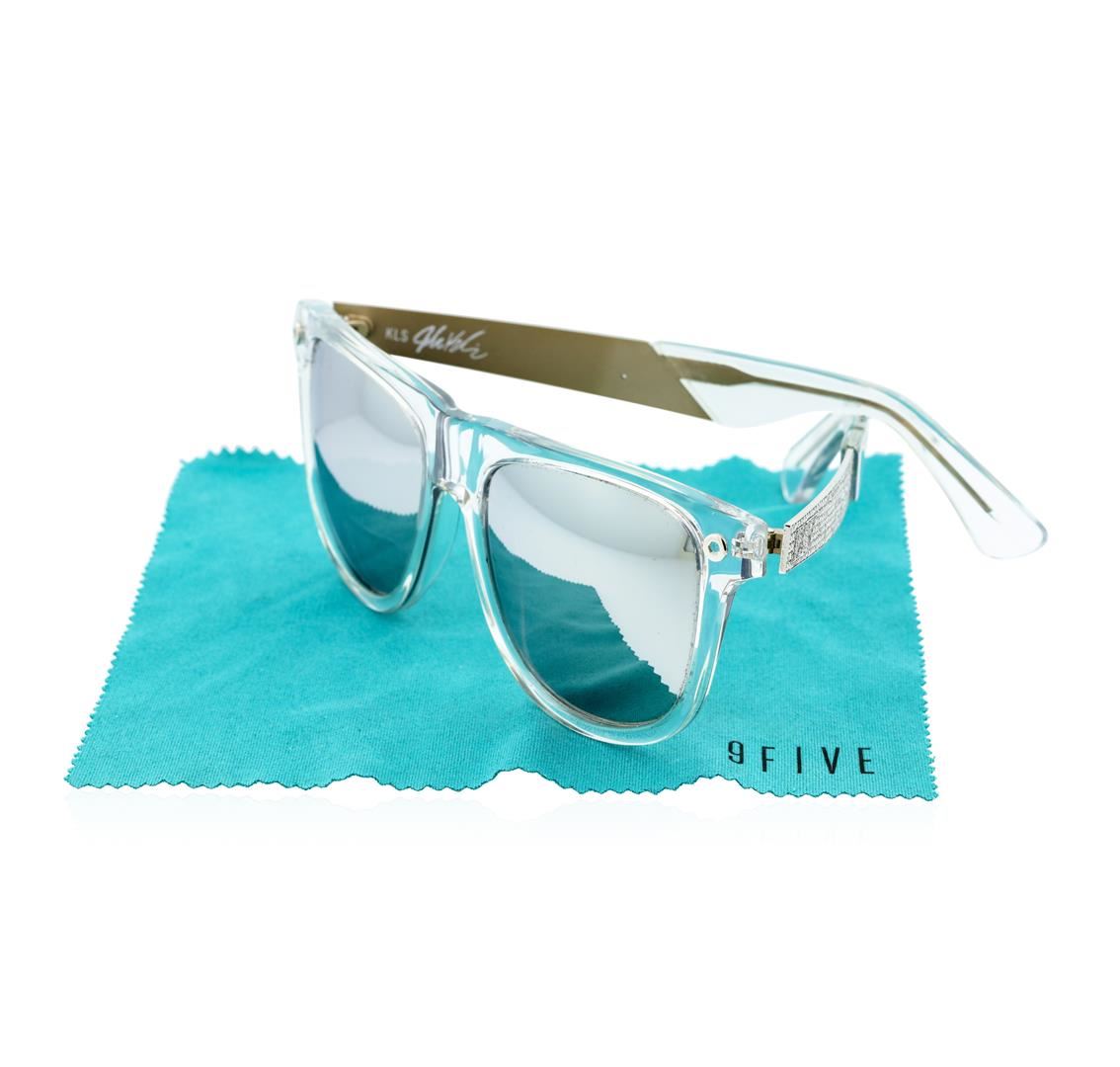 One pair of Stainless Steel 9-Five Sunglasses With Custom Diamond Finish