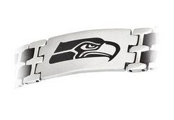 Polished stainless steel and black rubber 8 inch Seattle Seahawks team Logo ID bracelet.