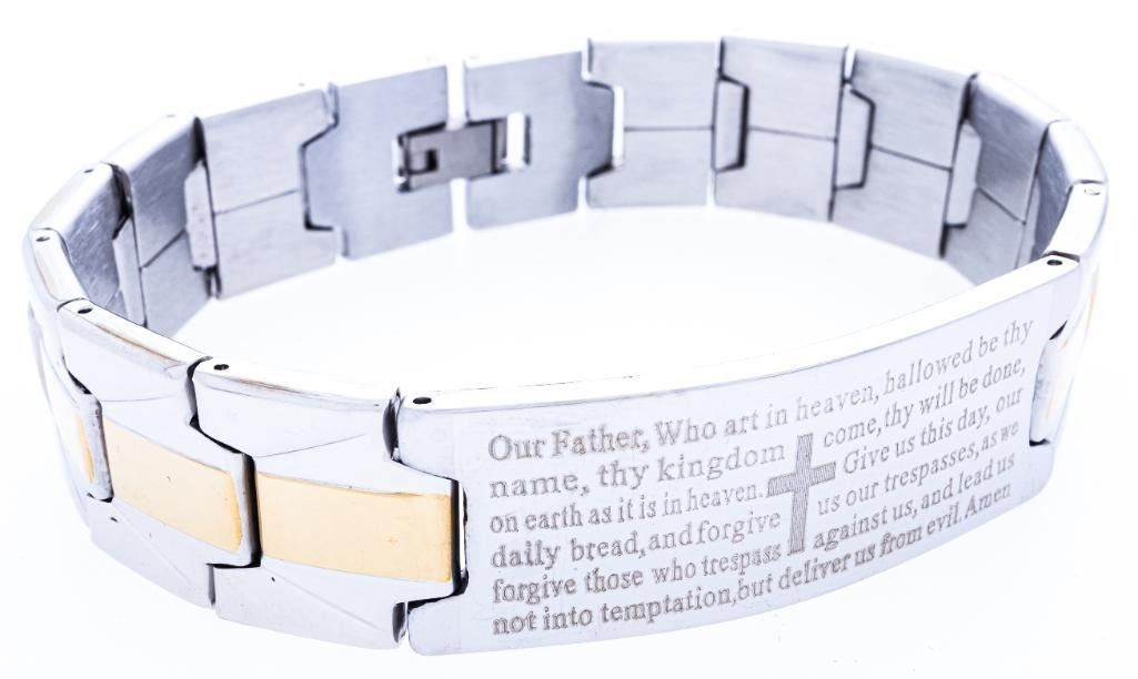 Stainless Steel Bracelet - ID Plate w/ Lords Prayer 2 - Tone
