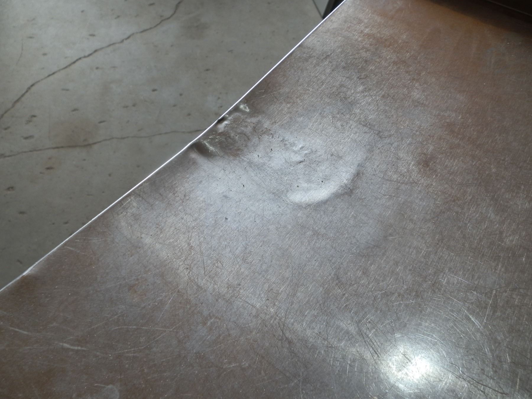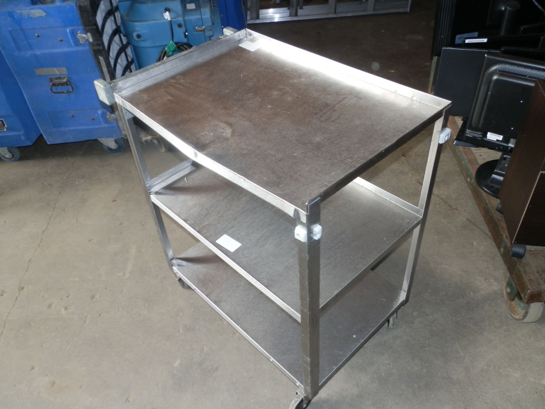 Stainless Steel Cart on wheels, dent on the top shelf as seen in the photos, 30"L 18"W 32"H...used