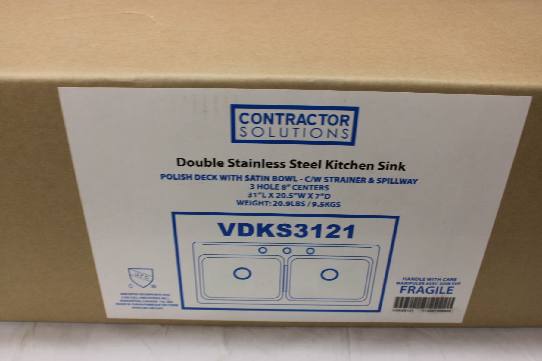 Stainless Steel Double Sink 20.5" x 31" in Box