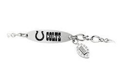 Polished stainless steel 7.5 inch Indianapolis Colts Team Name and Logo dangle oval ID bracelet.