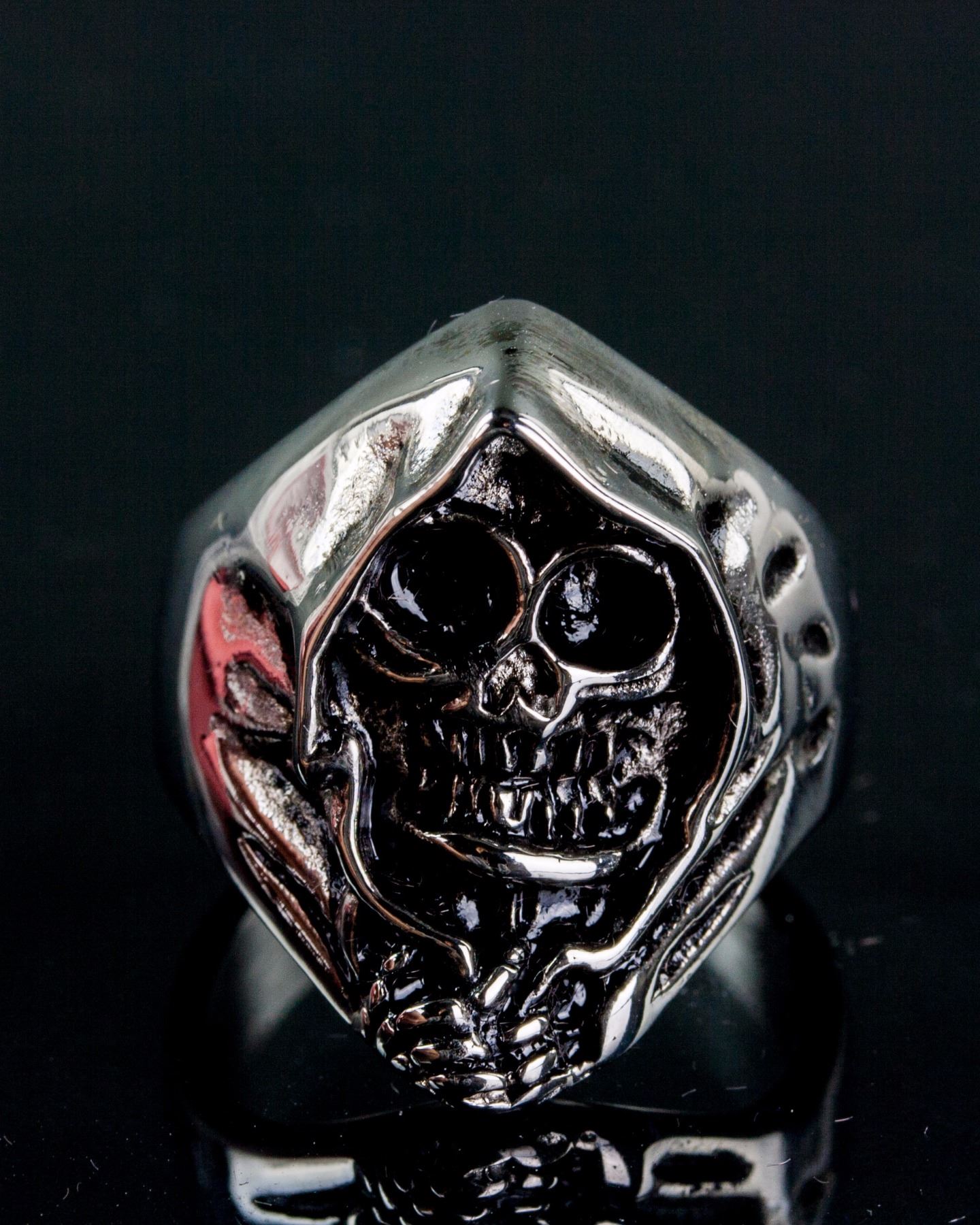 Stainless steel ghost design biker ring; retail value $100; D: 2.1 cm, 15.5 grams