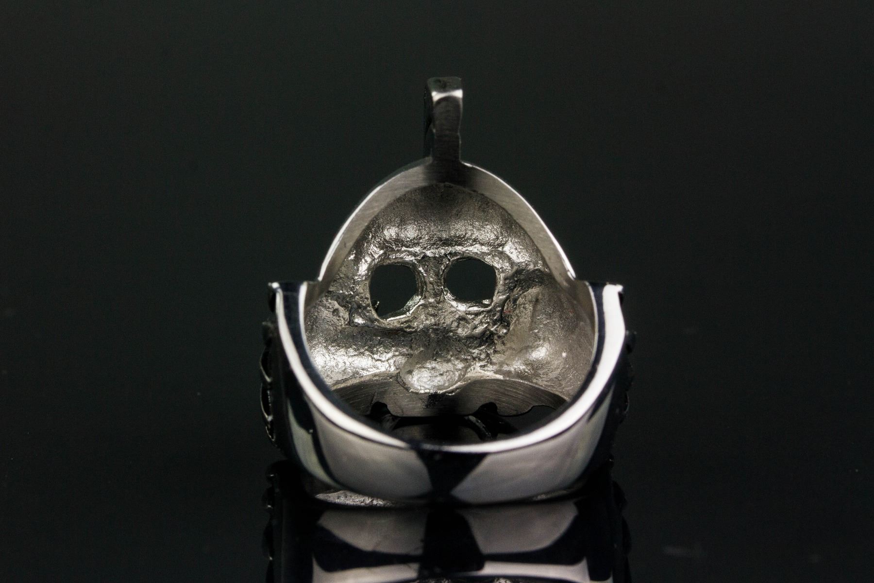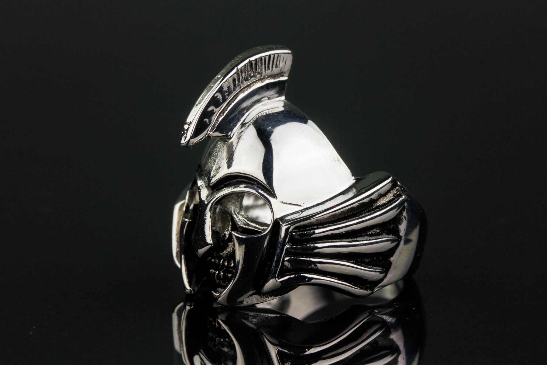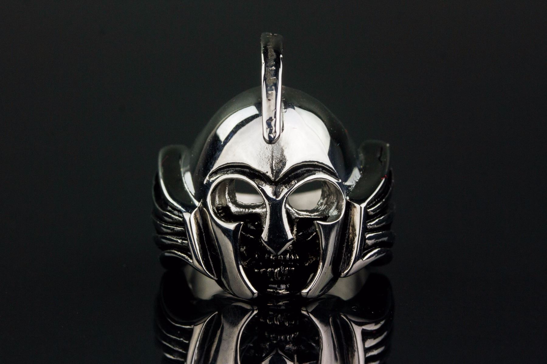 Stainless steel men's rider ring; of a skull warrior form; retail value $60; D: 2.1 cm, 16.84 grams