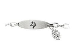Polished stainless steel 7.5 inch Minnesota Vikings Team Name and Logo dangle oval ID bracelet.