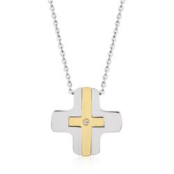 Make this cross pendant the focal point of your outfit. Our steel alloy collection is fashioned with corrosion resistant steel that makes for a lustrous and hygienic product that is crafted to last.Base Metal: Stainless SteelStyle: , Setting Type: InvisibleMaterials: , Stone Cut: RoundCarat Weight: .11 (ct)Color: , Plating Color: Silvertone| GoldtoneChain Clasp: 20.00Chain Length: 18 InchBracelet Size: 20 mm L x 20 mm W x 3 mm HStone Size: 1.3 mmType: Pendant