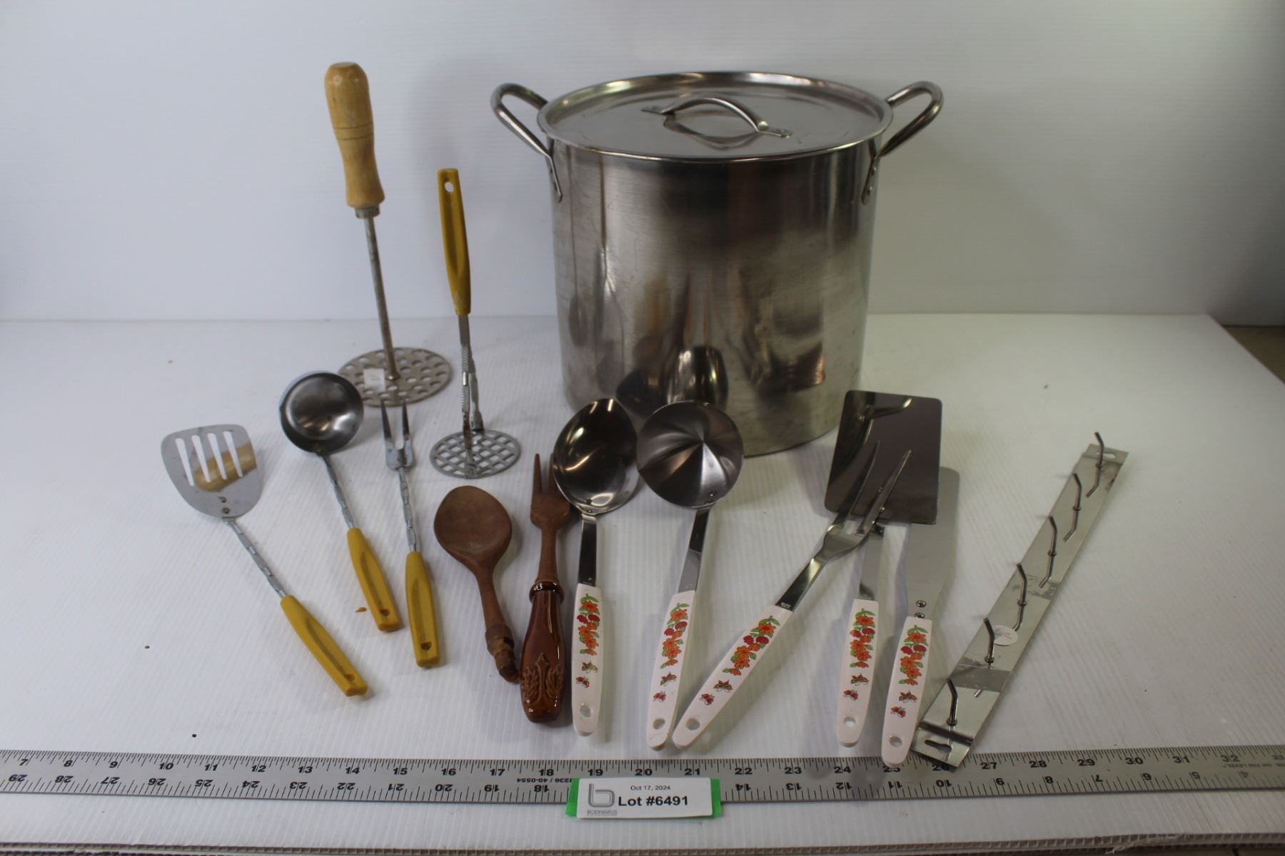 Stainless Steel Pot - Assortment of Kitchen Utensils
