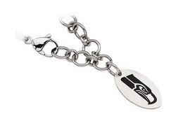 Polished stainless steel 8 inch Seattle Seahawks dangle Logo bracelet.