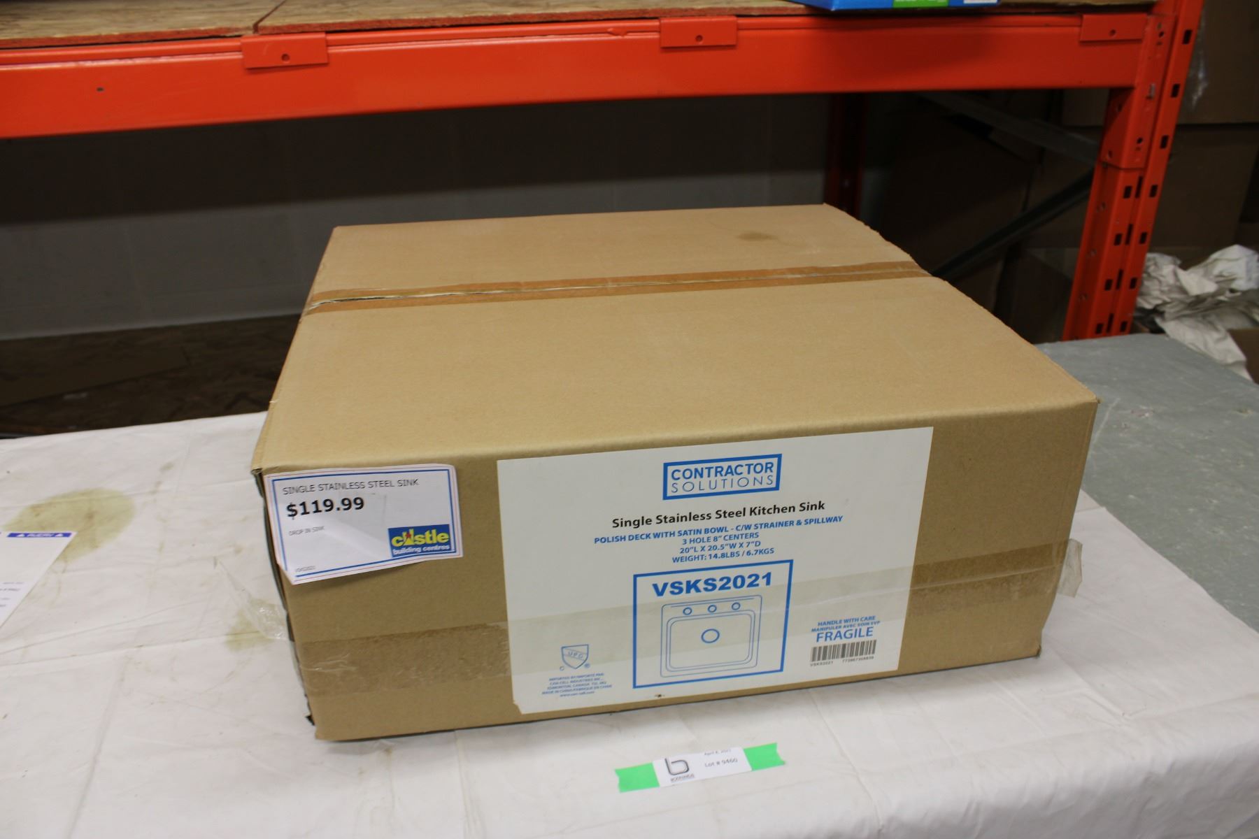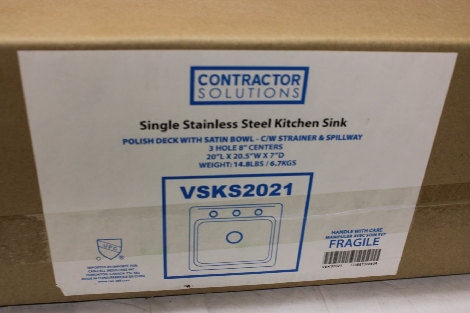Stainless Steel Sink 20" x 20.5" in Box