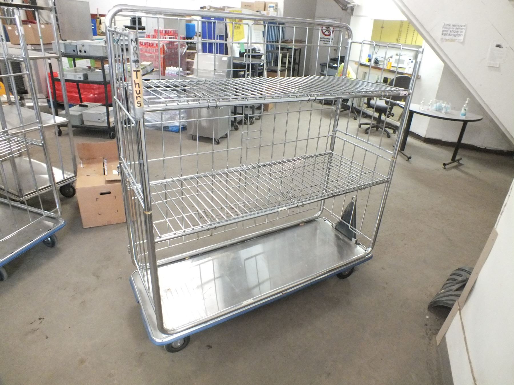 Stainless Steel Storage Cart On Wheels, has doors on one side, 59"l 23"d 62"h...used