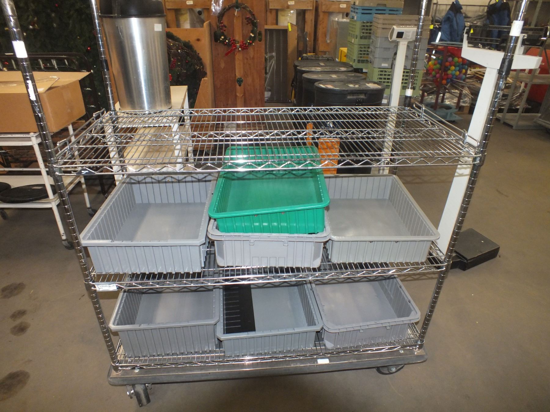 Stainless Steel Storage Rack On Wheels, 53"l 24"w 62"h w/ 7 bins...used