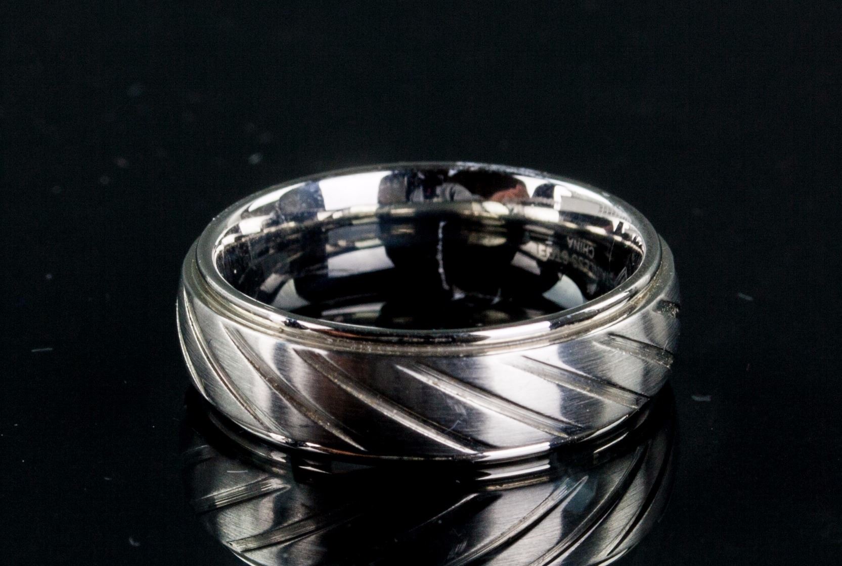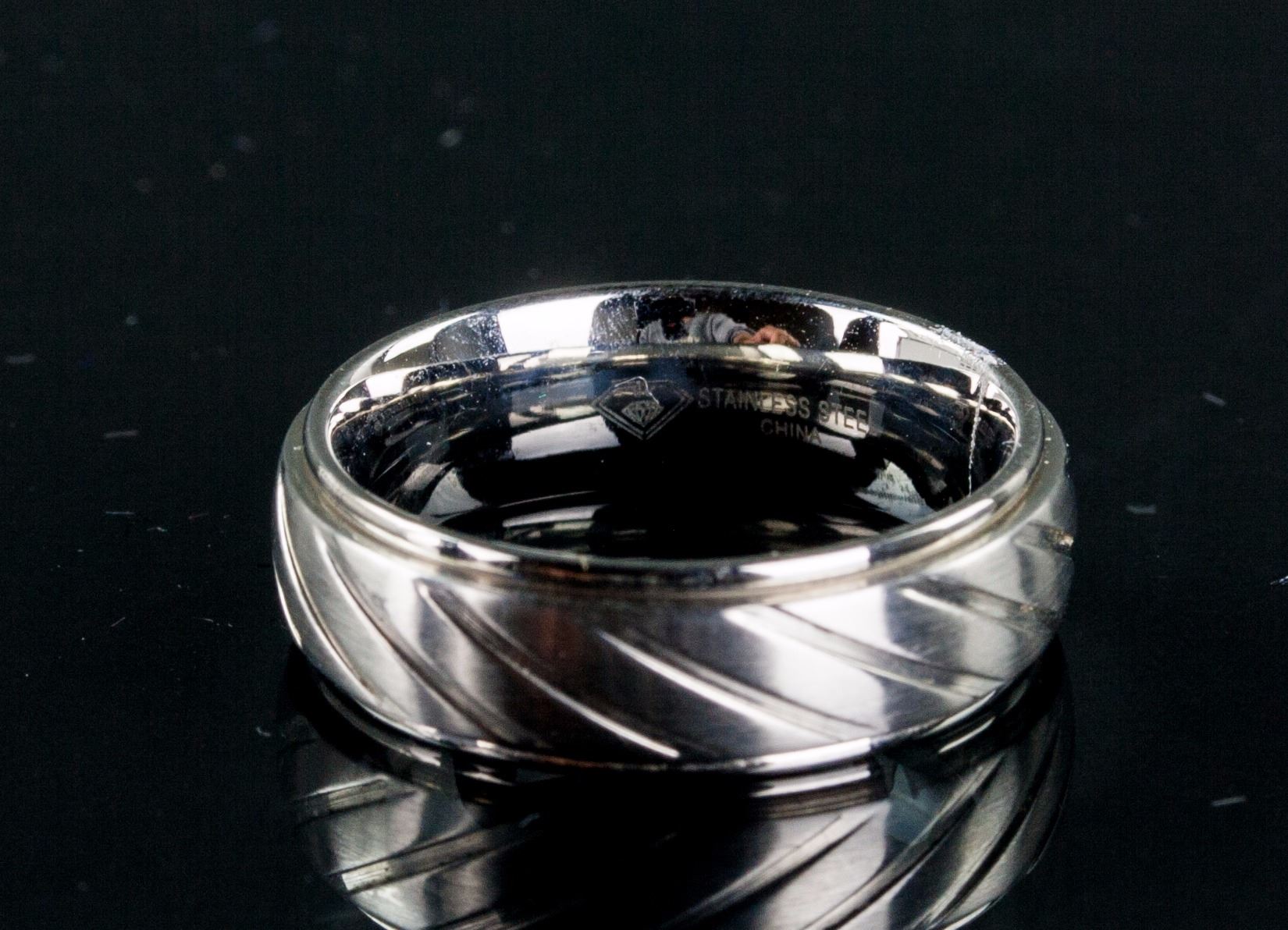 Stainless steel stripe band men's ring; retail value $60; D: 2 cm, 6.75 grams