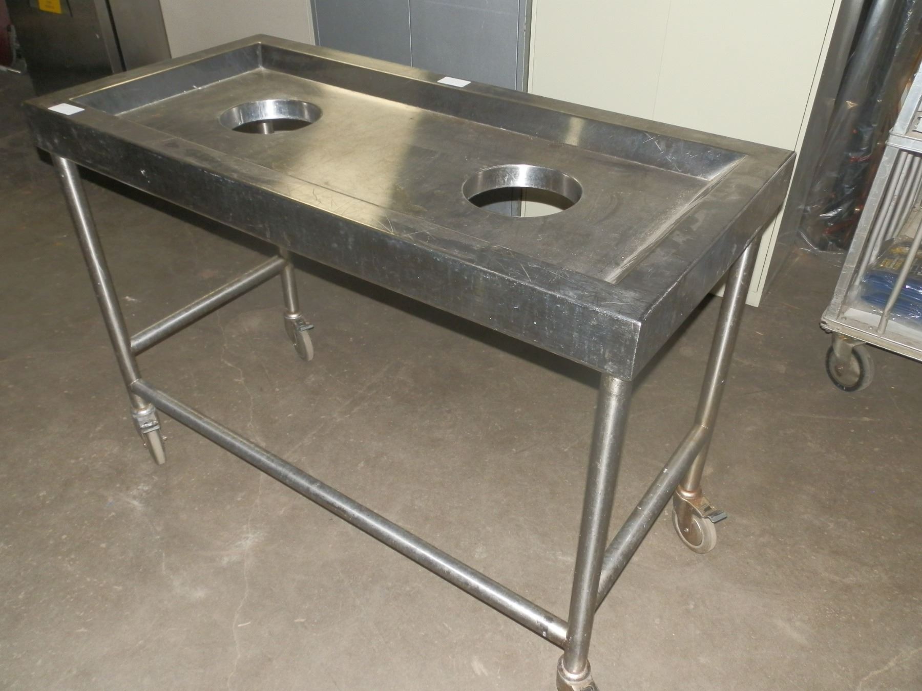 Stainless Steel Table, would make a good work bench, Note there is 2 holes in table maybe was used to hold soup pots....used