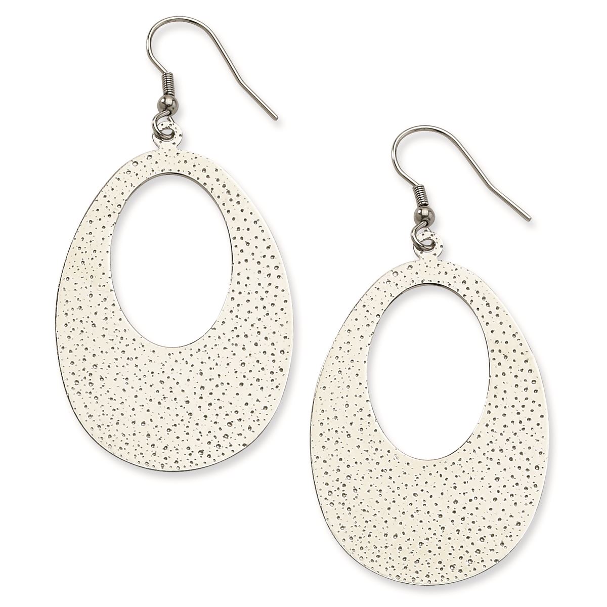 Stainless Steel Textured Oval Dangle Earrings