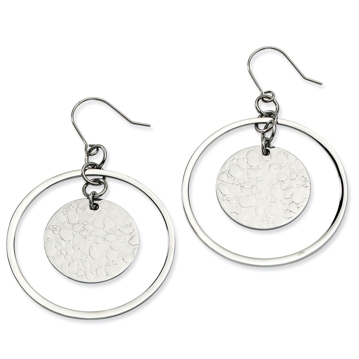 Stainless Steel Textured & Polished Circle Dangle Earrings