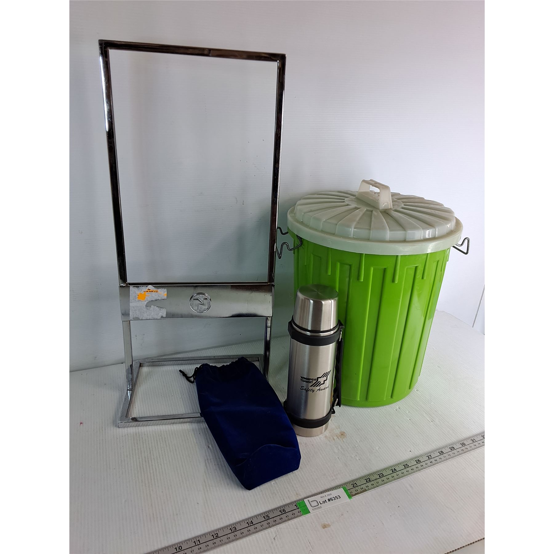 *Stainless Steel Vacuum Thermos 11"x 2.8", Sign Stand 25"x1.3", Garbage Can 14"x.8'', Cannot Ship