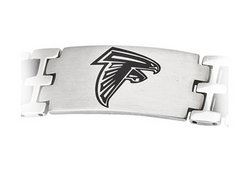 Polished stainless steel and black rubber 8 inch Atlanta Falcons team Logo ID bracelet.