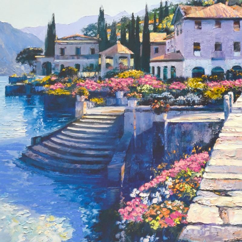 "Stairway To Carlotta" is a limited edition giclee on canvas by Howard Behrens (1933-2014), numbered and bearing the authorized signature of the artist. This piece is from Behrens' Legacy Edition. Includes Certificate of Authenticity. Measures approx. 36" x 24" (image).
