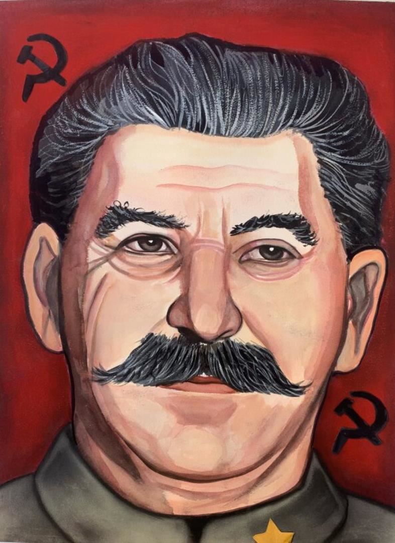 A pastel & watercolor portrait of the montrous Communist Dictator Joseph Stalin 24x18" on deckled fine art paper, by Anonymous