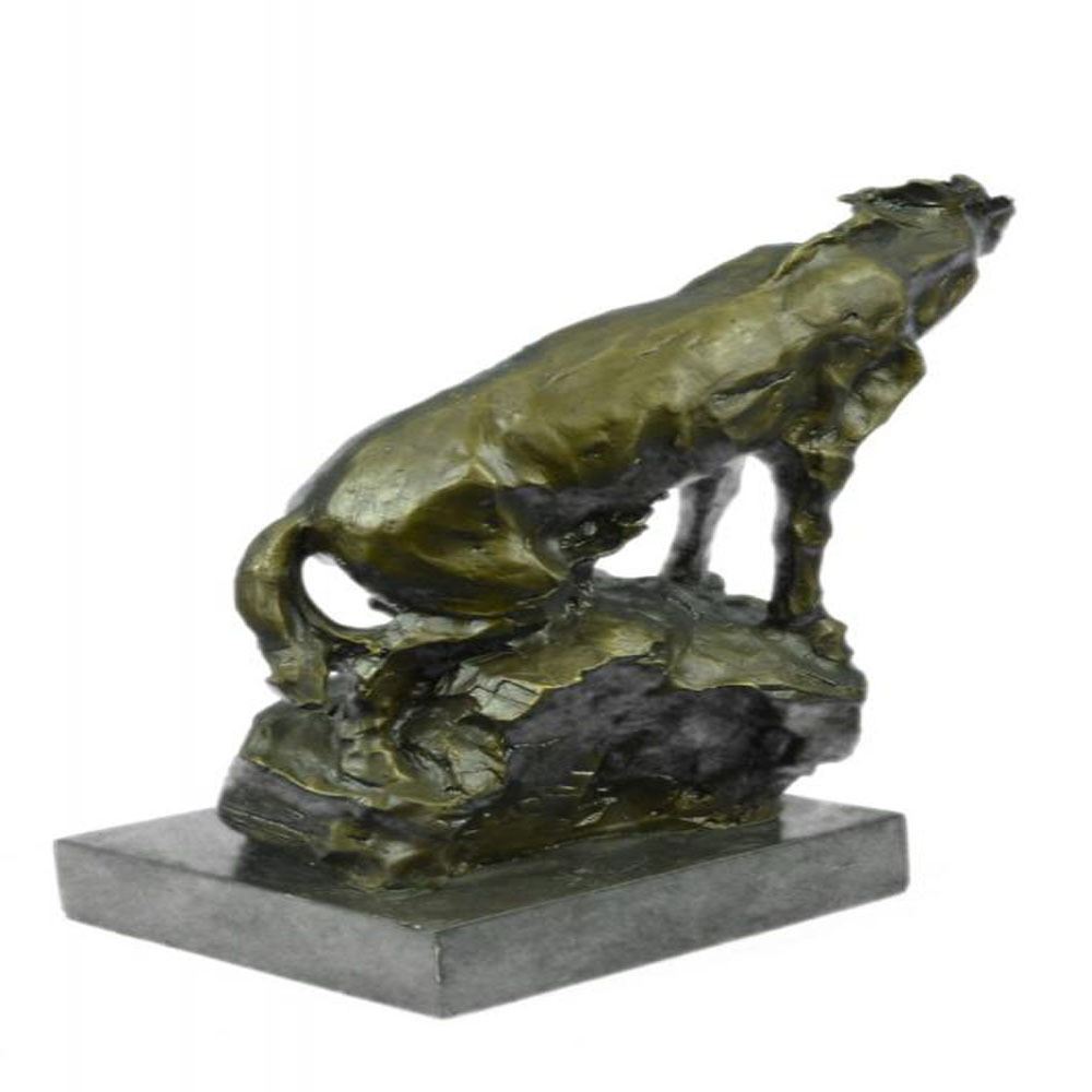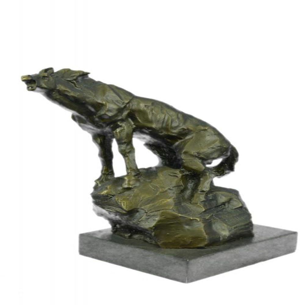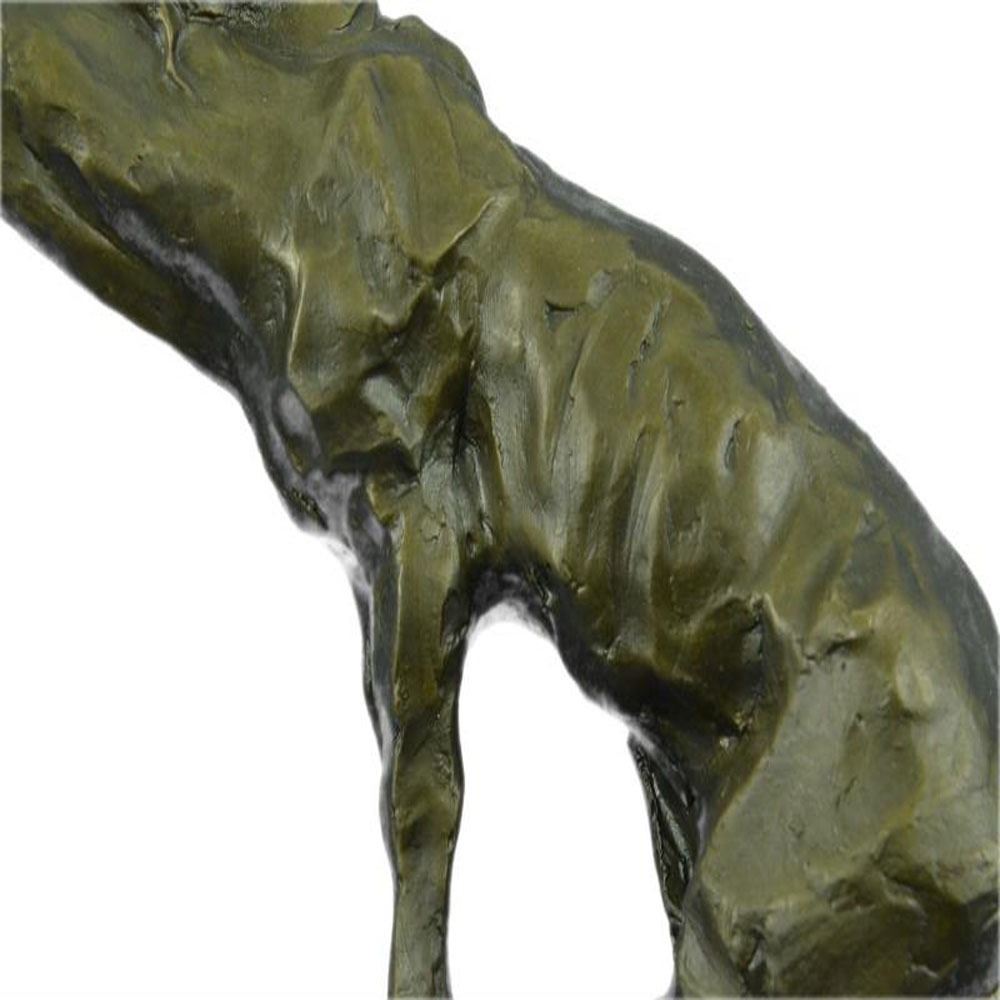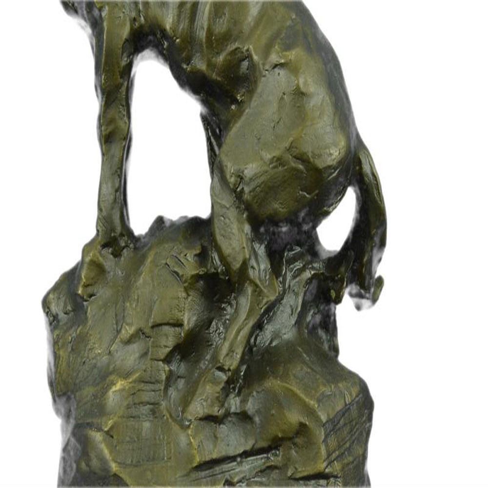 This abstract and modern horse gallops into the wind and rears up letting out a wild neigh as the wind seems pushing against him with a mighty force. This abstract horse captures emotions from the artist and the nature of this wild beast it self. His mane, although not defined, captures the pure energy of movement and shows the force and energy and creativity that is behind this Sculpture. His body has fine linear lines that protrude from his side giving him a unique yet desirable look for the abstract theme. His hind legs mesh in to the base creating the support for the Sculpture. This Sculpture was cast using the Lost Wax Method and has a brown patina. Bronze Dimensions with Marble Base: Height 13 X Width 14 inches. Weight: 20 LBS.