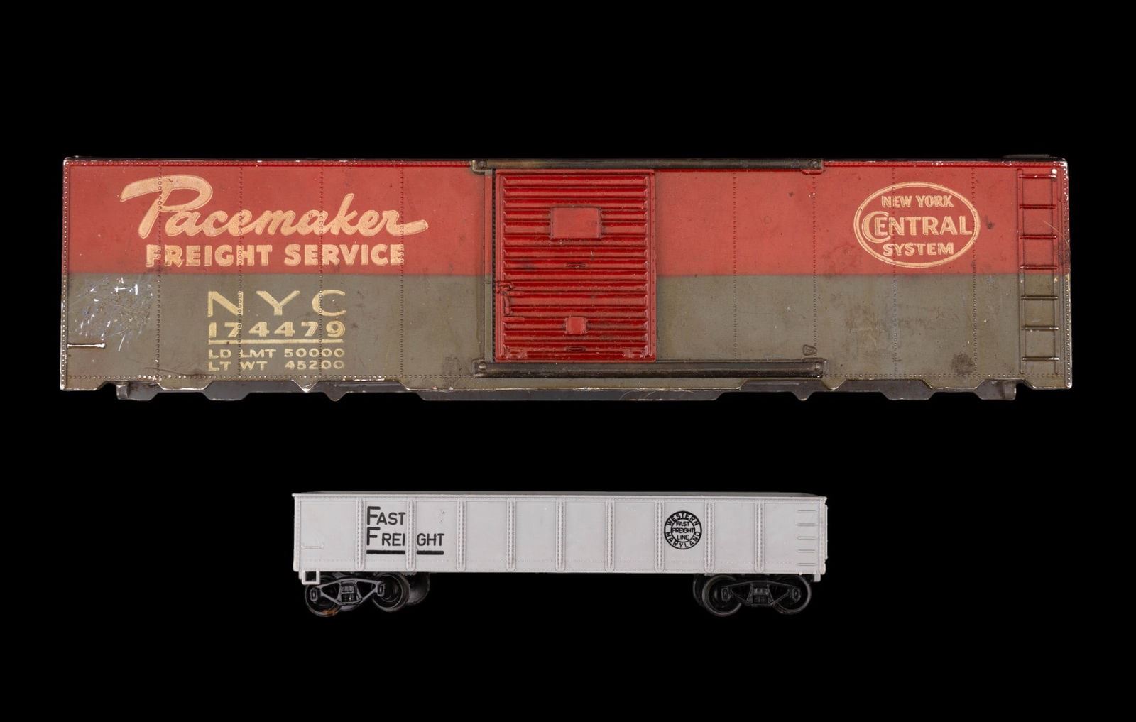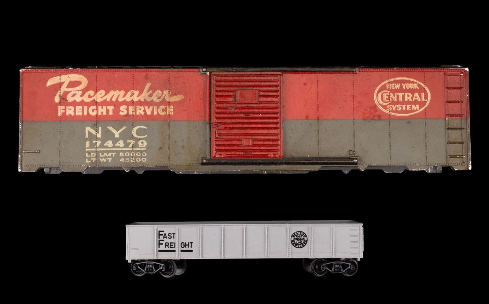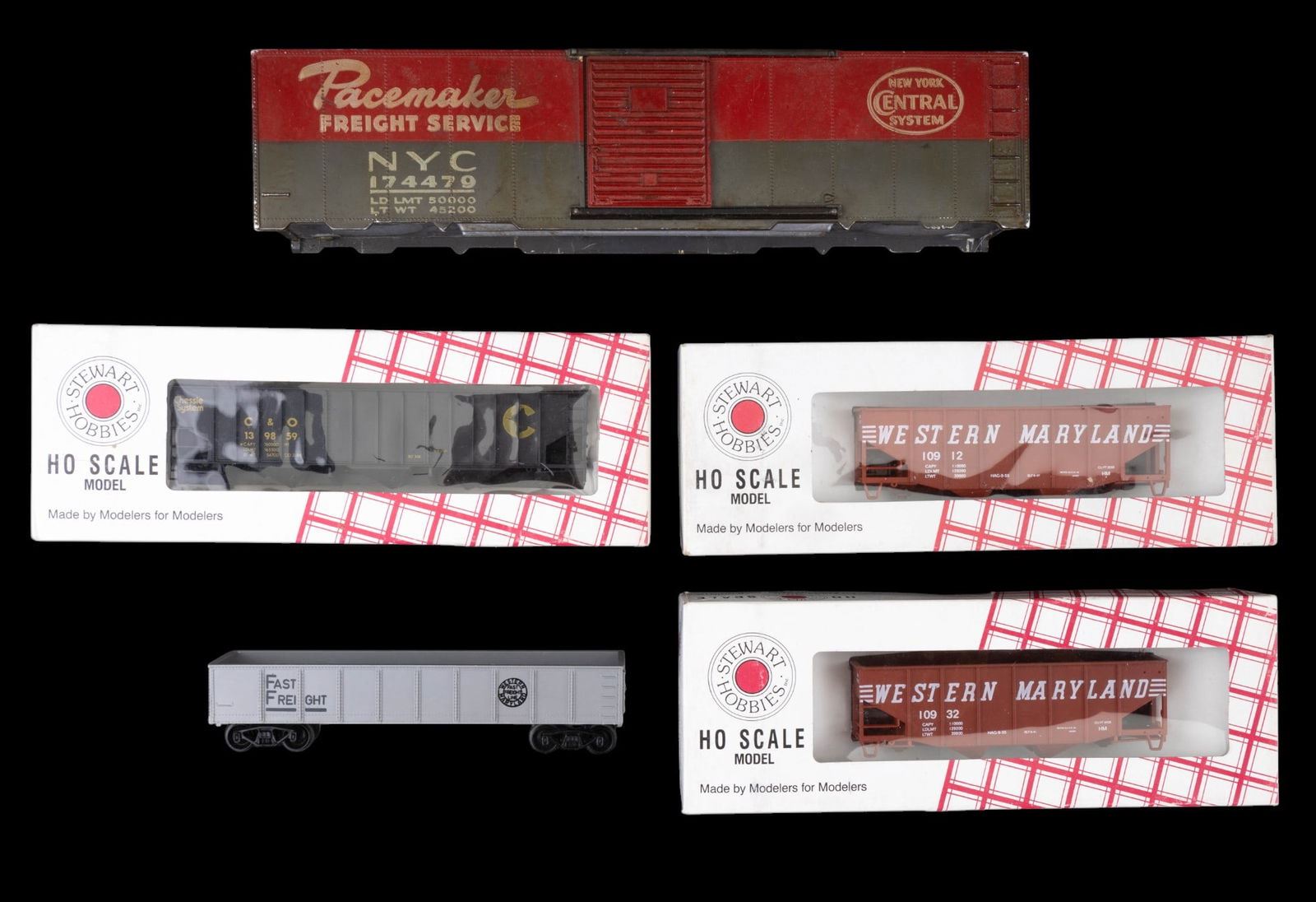 2024 US / BNA Postage Stamp Catalogue, Scott Standard Postage Stamp Catalogue 2024 volumes 3A G & 3B H-I, Stewart Hobbies HO scale boxed Western Maryland hopper cars (2) & C&O hopper car, loose HO scale Fast Freight gondola car, loose New York Central O scale railroad car, O'Brien's / collecting Toys 9th Edition Identification & Value Guide, & assortment of 30 beer labels & coasters.