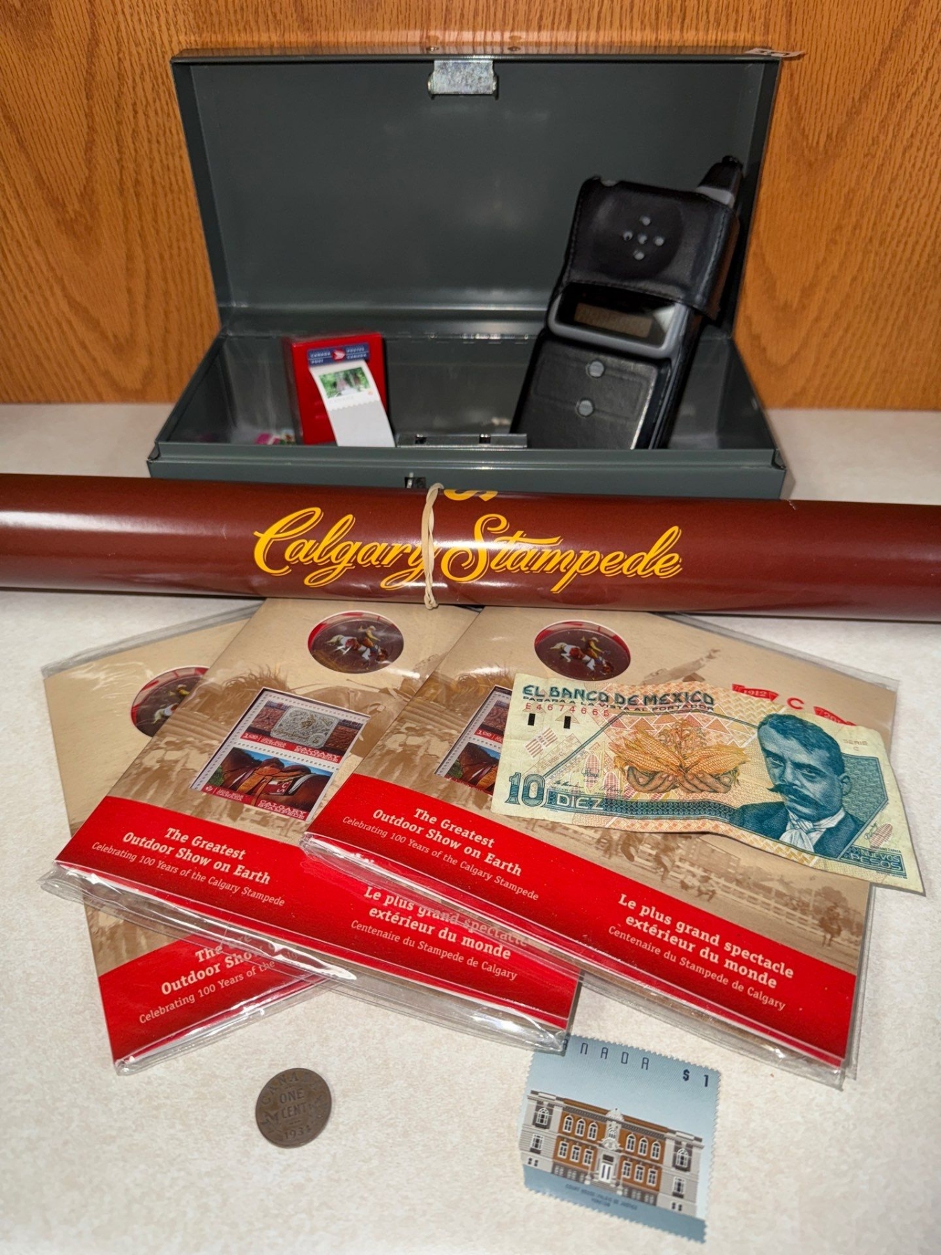 Stamp Collection & Motorola Flip Phone Cash Box