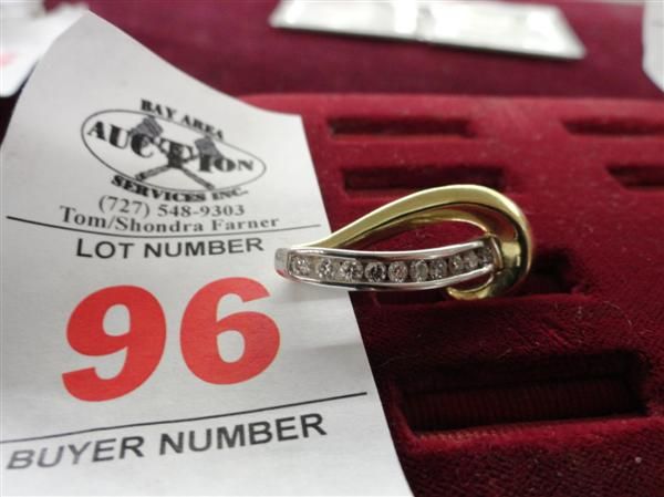 Stamped 14K Gold Free Form Pendant w/10 Channel Set Diamonds
