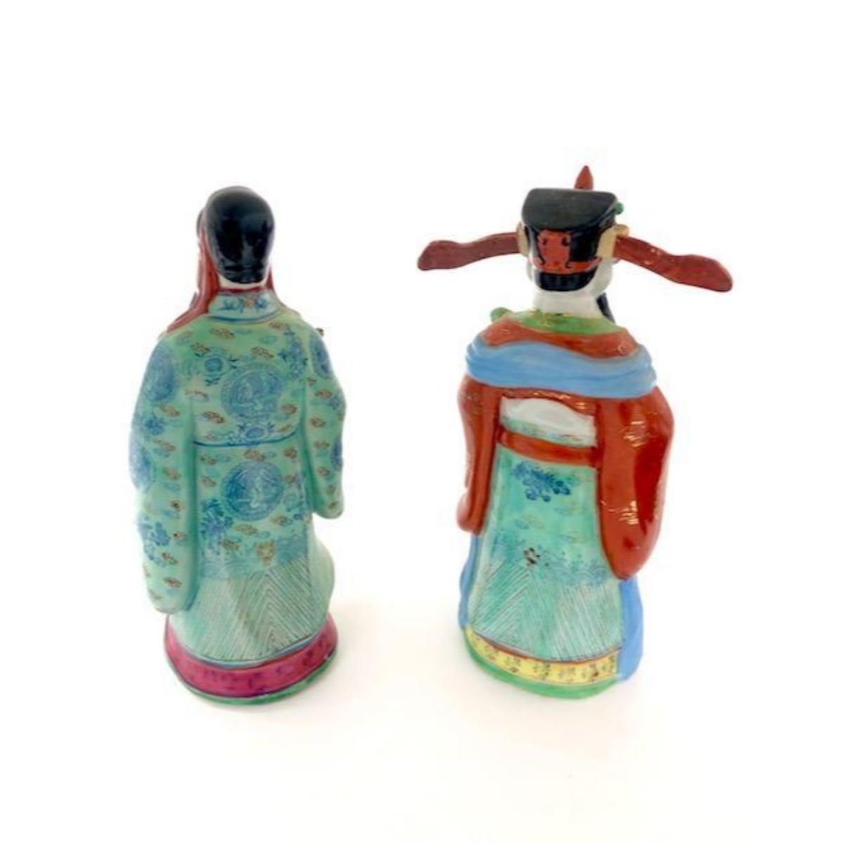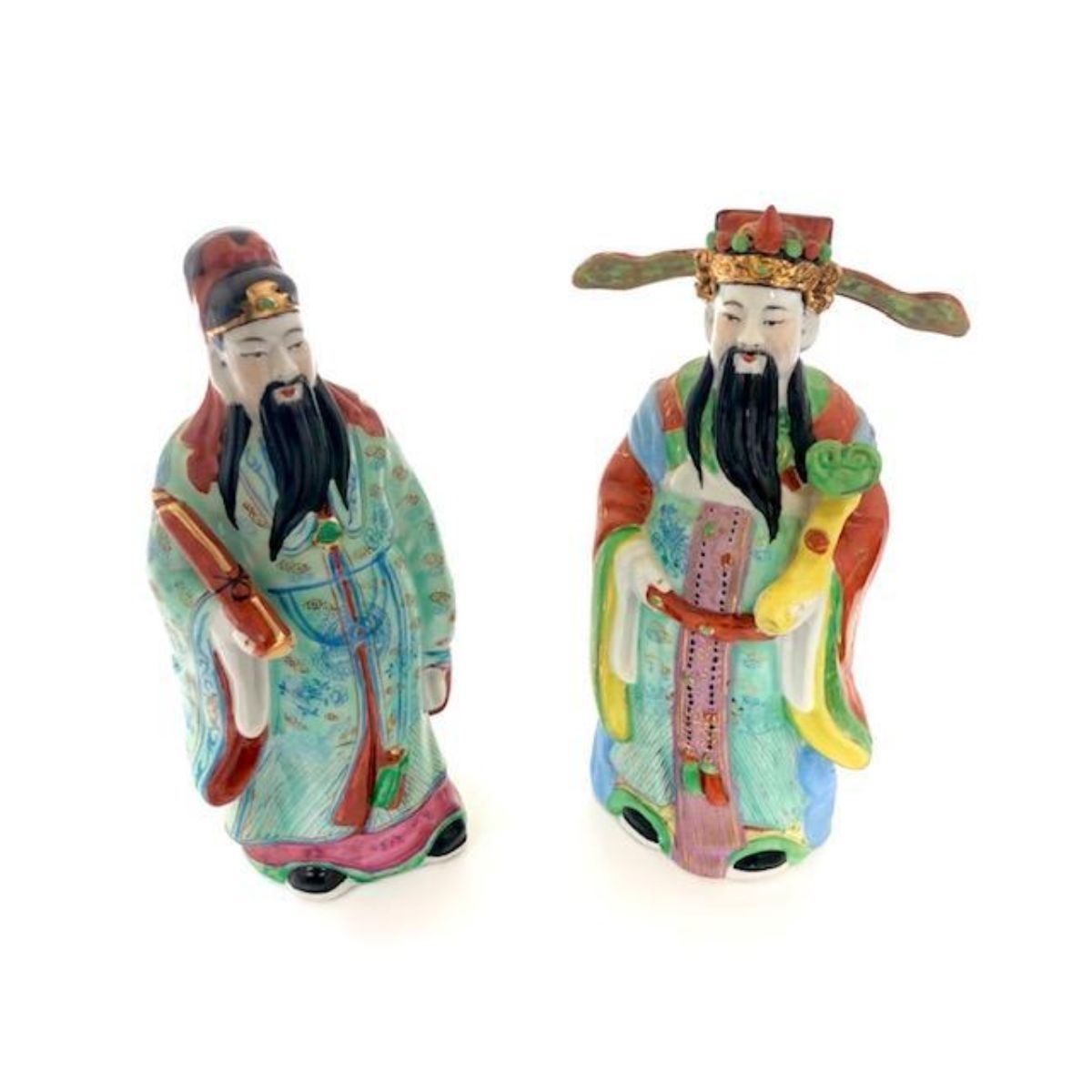 Stamped Famille Rose Porcelain Figures Of Fu Xing & Lu Xing. Fu Xing Is The Chinese God Of Good Fortune And Lu Xing Is The Chinese God Of Prosperity. In Great Condition, Height Of Both 12", View Photos For Further Details.