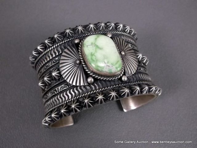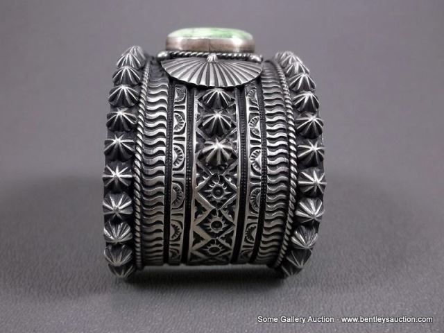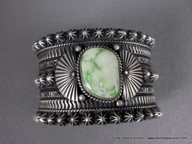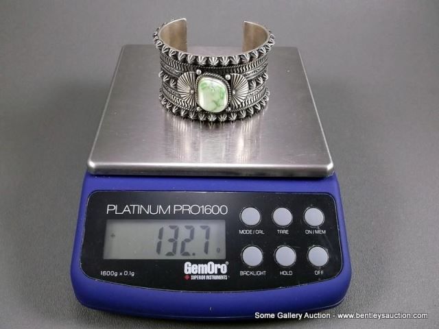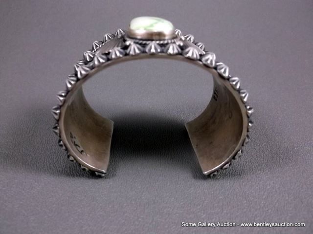 Stamped Sterling Silver Southwest Bracelet w/ Carico Turquoise-Marked Derrick Gordon Weight: 132.7 G