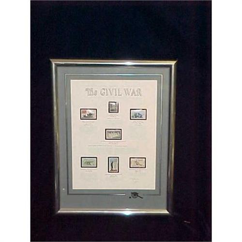 Stamps of The Civil War, Framed and Matted. Wonderful Collection! Beautifully matted in grey and framed in silver, approx. 13 x 17 inches and in very good condition.