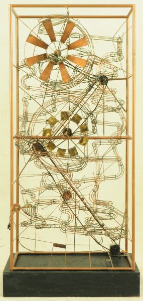 For more information on the artist, Stan Bennett, visit stanbennett.com. Measures 5ft Tall Stan Bennett's Bio from his website: Stan Bennett was born in Chico, CA and grew up mostly in Palo Alto (in the San Francisco Bay Area). Following service with the First Marine Division in WW2, he graduated from San Jose State College (now University). For the next 20 years he held positions in the graphic arts industry, including technical writing and illustration, art direction, editing, and photography. He was also vice president of a large technical publications and engineering company. During these years Stan was involved in all phases of design and production of complex mechanical and electronic systems manuals for both government and commercial use. This background, plus a highly developed natural mechanical aptitude, has contributed since 1968 to a unique approach to metal sculpture. Now, his welded steel, copper and brass creations are found in collections internationally. Stan's studio is in Ferndale in the northwestern corner of California. Visitors are encouraged to