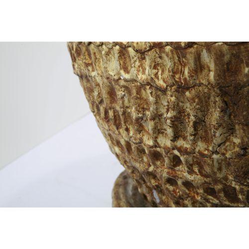 Artist Name: Stan Bitters<BR>Manufacturer: Produced by Hans Sumpf Company<BR>Description: Ochre glazed "Thumb" pots with catch trays (2)<BR>Circa: circa 1963<BR>Medium: <BR>Signature: <BR>Measurements: 18"h x 24"diameter<BR>Edition: <BR>Notes: <BR>Literat