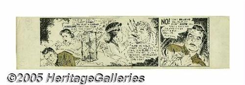 <B>Stan Drake - Heart of Juliet Jones Daily Comic Strip Original Art, dated 1-23-58 (King Features Syndicate, 1958).</B></I> Political speech writer Vic Wells is tormented by dreams about Juliet's failed political campaign. Stan Drake's talent for lighthearted humor is showcased in this daily. The image area of this daily is 18" x 5.25". The zip-a-tone has yellowed and the paper has aged slightly; otherwise the art is in Very Good condition.