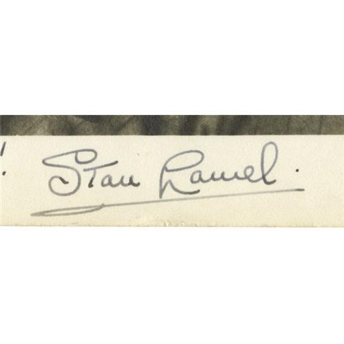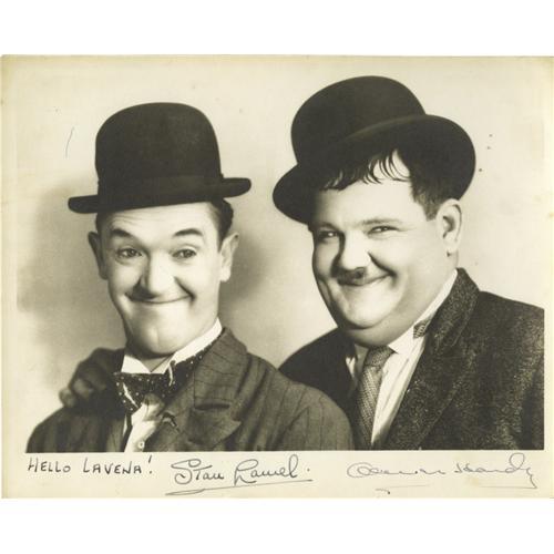 <B>Stan Laurel and Oliver Hardy Signed Photo.</B></I> A b&w 10' x 8" promo photo of the legendary comedy team, signed by both in black ink. In Very Fine to Excellent condition with some very mild wear and soiling and mild toning along the edges.<I>Accompanied by LOA from PSA/DNA.</B></I><BR><BR><b>Shipping:</b> Small Flat (<a target="_blank" href="http://www.heritageauctions.com/common/shipping.php">view shipping information</a>)