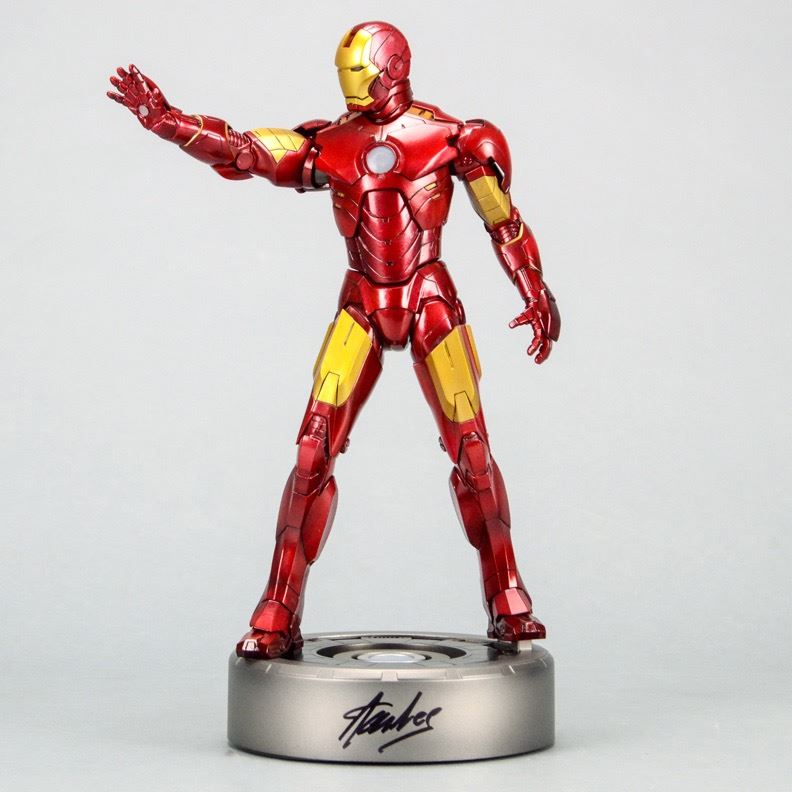 Weapons designer Tony Stark is in Afghanistan to introduce his new missile design to the Air Force when the unit he is traveling with is attacked and Stark is taken hostage. Injured by shrapnel embedded near his heart, he is ordered by his captors to assemble a missile for them, and they give him access to a workshop. He puts his creativity to use by assembling a bulletproof suit of power armor, complete with pacemaker and flamethrowers, and uses it to free himself. This Kotobukiya Iron Man Fine Art statue has been personally hand-signed by Stan Lee during his signing with Celebrity Authentics. Depicts Iron Man in his Mark 4 armor as seen in Iron Man 2! Statue ships affixed with the Celebrity Authentics serial-numbered and tamper evident Authentication Hologram and include Celebrity Authentics Certificate of Authenticity featuring picture of Stan signing base. Stock image used for product images. Item ships with clean, unsmudged autograph in similar location. Gorgeous and rare statue signed by the beloved Stan Lee!